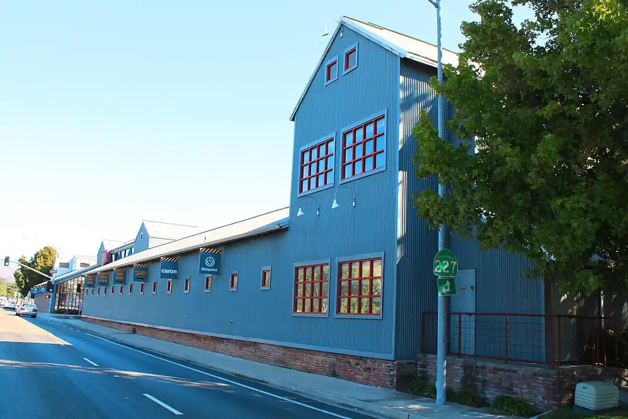 The Pacific Coast Railway Company Grain Warehouse is a warehouse building located at 65 Higuera St. in San Luis Obispo, California. The warehouse is the only surviving building from the Pacific Coast Railway's headquarters as well as the only extant grain storage building in San Luis Obispo. The date of the building's construction is uncertain; city records state that it was built in 1885, but it may have been rebuilt in 1892–93 after a fire. The wood frame building has corrugated iron paneling on its walls and roof, a typical design for contemporary storage buildings. The Pacific Coast Railway used the warehouse from its construction until the railway folded in 1942; the warehouse held grain grown in the region, which was at the time a major producer of grain and beans. Read more on Wikipedia