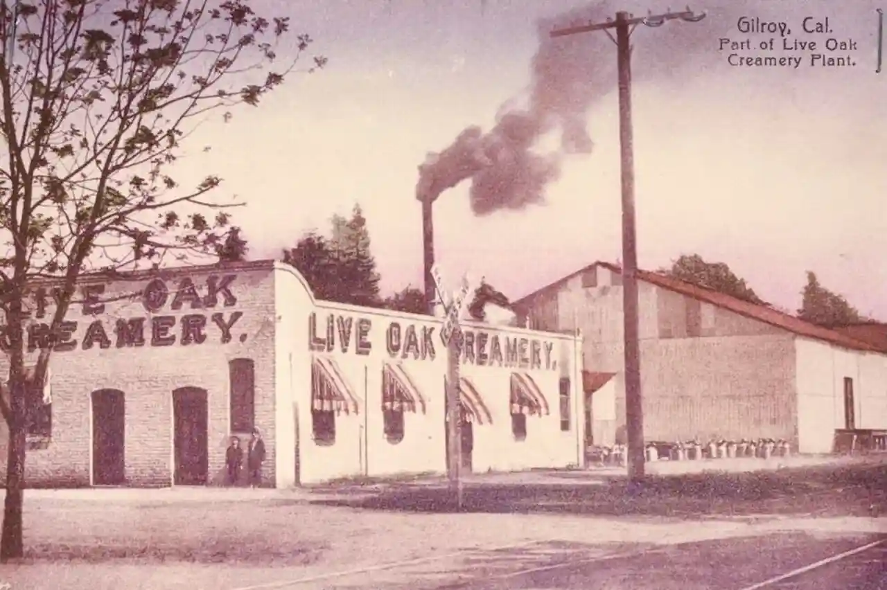 The Live Oak Creamery was a historic creamery in Gilroy, California that was established in 1908. The creamery is best known as Gilroy's first butter factory and only insulated structure in the vicinity. During the 1920s and 1930s, the creamery played a role in cheese processing. The Live Oak Creamery was placed on the National Register of Historic Places on March 11, 1982. Read more on Wikipedia
