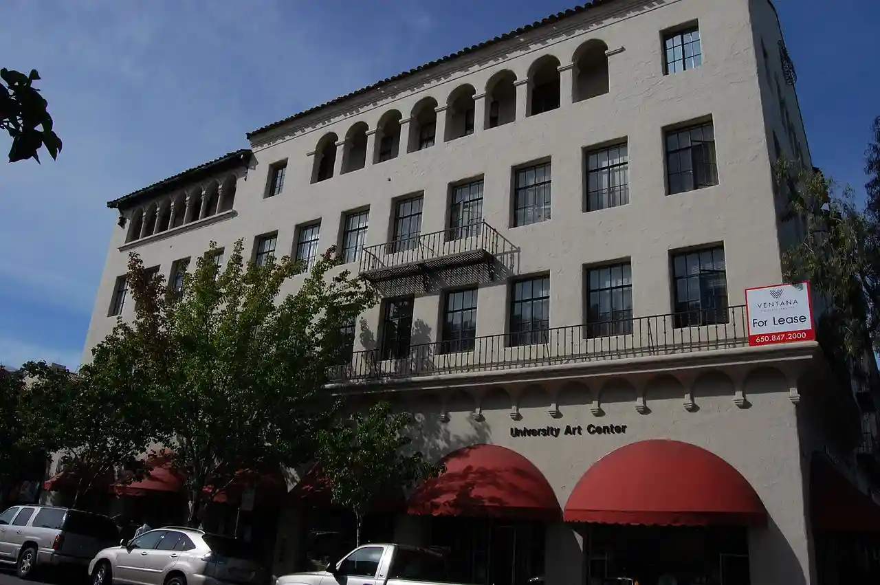 The Ramona Street Architectural District, in downtown Palo Alto, California, is a Registered Historic District. This portion of the street, between University Avenue and Hamilton Avenue, is a highly distinctive business block. It showcases the Spanish Colonial and Early California styles with gentle archways, wrought iron work, tile roofs of varying heights and courtyards. Read more on Wikipedia