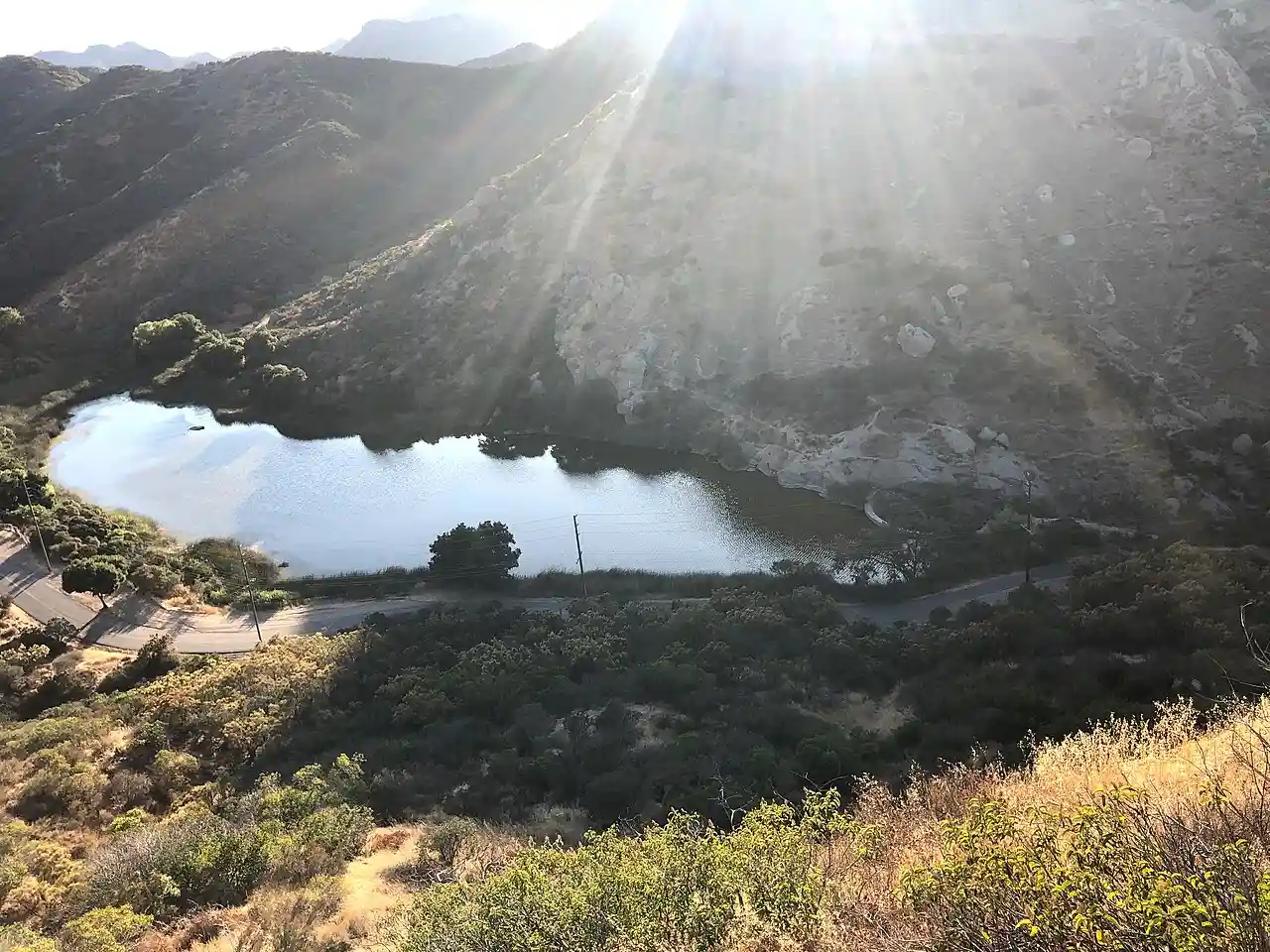 Lake Eleanor (National ID # CA00737), also known as Banning Dam, is an freshwater lake (gravity dam) near Westlake Village in Thousand Oaks, California. The lake lies within the Lake Eleanor Open Space and was Ventura County Historic Landmark No. 120 in 1988. It is also designated City of Thousand Oaks Historical Landmark No. 9. Under ownership of Conejo Open Space Conservation Agency (COSCA), the lake sits in a gorge with sheer cliffs and drops of . An artificial lake, it was first constructed in 1889, and may be the first concrete arched dam built in California.https://docs.vcrma.org/images/pdf/planning/programs/chb/Points_of_Interest.pdf (Page 51). Read more on Wikipedia