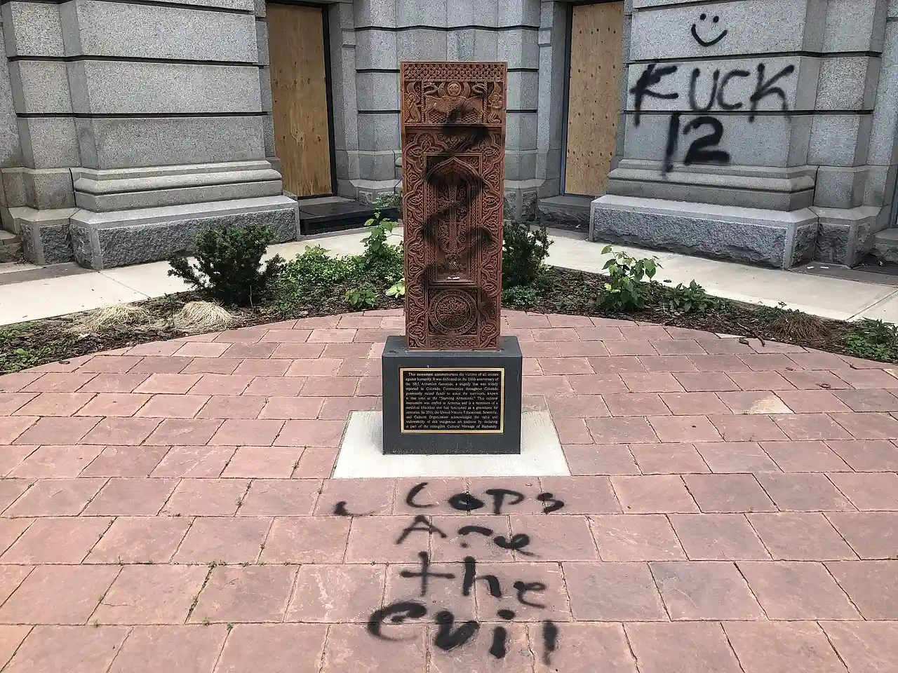 The Armenian Khachkar is a khachkar and monument dedicated to the victims of genocide, installed outside the Colorado State Capitol, in Denver. The memorial was dedicated in 2015. It was defaced in May 2020 as part of the George Floyd protests. Read more on Wikipedia