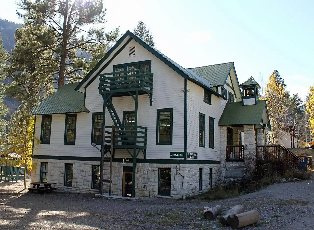 Marble High School is a school and historical site preserved by the National Register of Historic Places located in Marble, Colorado. It was built in 1910, and is the only surviving building in Marble that utilizes marble in its construction, despite the name of the town. It is currently owned by Marble Historical Society, who operate the building as a museum. Read more on Wikipedia