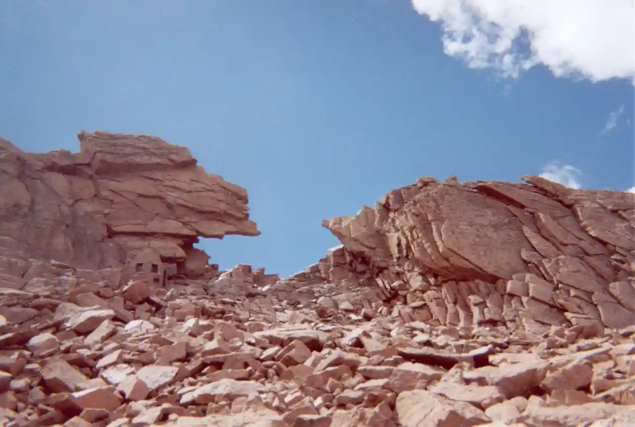 The East Longs Peak Trail, Longs Peak Trail, Keyhole Route or Shelf Trail in Rocky Mountain National Park is listed on the National Register of Historic Places for its significance in the early recreational development of the park. The trail was laid out in 1878 by Reverend Elkanah Lamb, long before the designation of the region as parkland. It was extended in 1910 by Enos Mills. The trail leads from the Tahosa Valley, running counterclockwise around Longs Peak and reaching the summit at 14,259 feet. Read more on Wikipedia