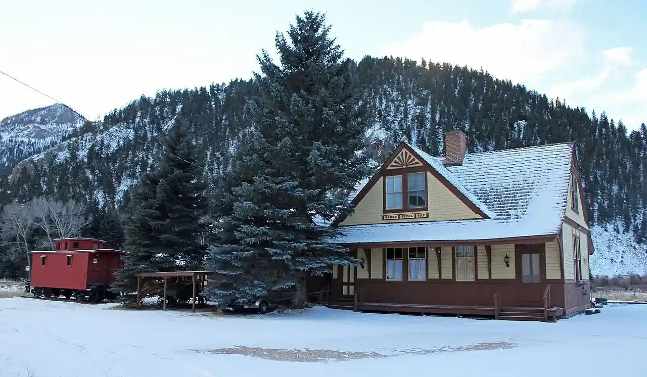 The Wagon Wheel Gap Railroad Station, in Creede, Colorado, was built in 1883. It was listed on the National Register of Historic Places in 1976. It was a station on a narrow-gauge railroad line that opened in July, 1883. and Read more on Wikipedia