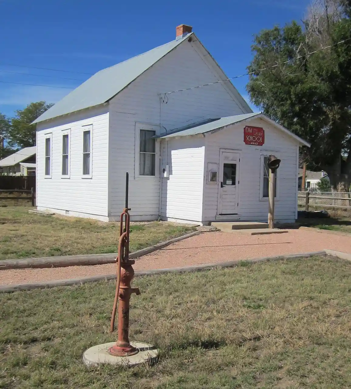 The Old Trail School, at 421 High St. in Wiggins, Colorado, is a historic one-room schoolhouse which was built around 1912. It has also been known as the Reed School, presumably because it was located on the Reed family homestead. It was moved in 1917 to a site close to the Fort Morgan cut-off of the Overland Trail. It served as a school from c.1912 to 1946, when schools were consolidated. It was then moved to Wiggins to stand next to the continuing school there, and it was used as a music room. After the continuing school was expanded in 1963, it was no longer needed for that purpose. The Wiggins Historical Group took ownership in 1964 and moved it to its current location. With It was listed on the National Register of Historic Places in 2004. Read more on Wikipedia