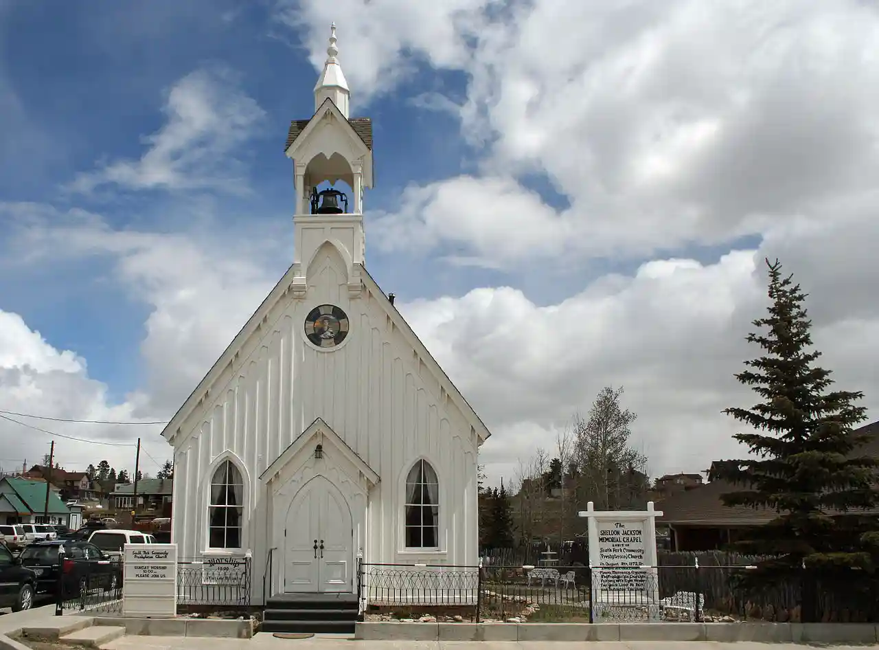 The South Park Community Church is an historic Carpenter Gothic-style church building located at 600 Hathaway Street in Fairplay, Park County, Colorado. Built in 1874, the church was founded by Presbyterian missionary Sheldon Jackson. Its board and batten siding and lancet windows are typical of Carpenter Gothic churches. Originally the Sheldon Jackson Memorial Chapel, the structure is now the South Park Community (Presbyterian) Church.Colorado Historical Society listings for Park CountyPark County: Fairplay Area Historic SitesLaura King Van Dusen, "Sheldon Jackson's Fairplay Church: One of More than One Hundred in Western U.S.; Jackson Arrested, Jailed in Alaska; Contributed to Settlement of the West", Historic Tales from Park County: Parked in the Past (Charleston, South Carolina: The History Press, 2013), , pp. 69-77. Read more on Wikipedia