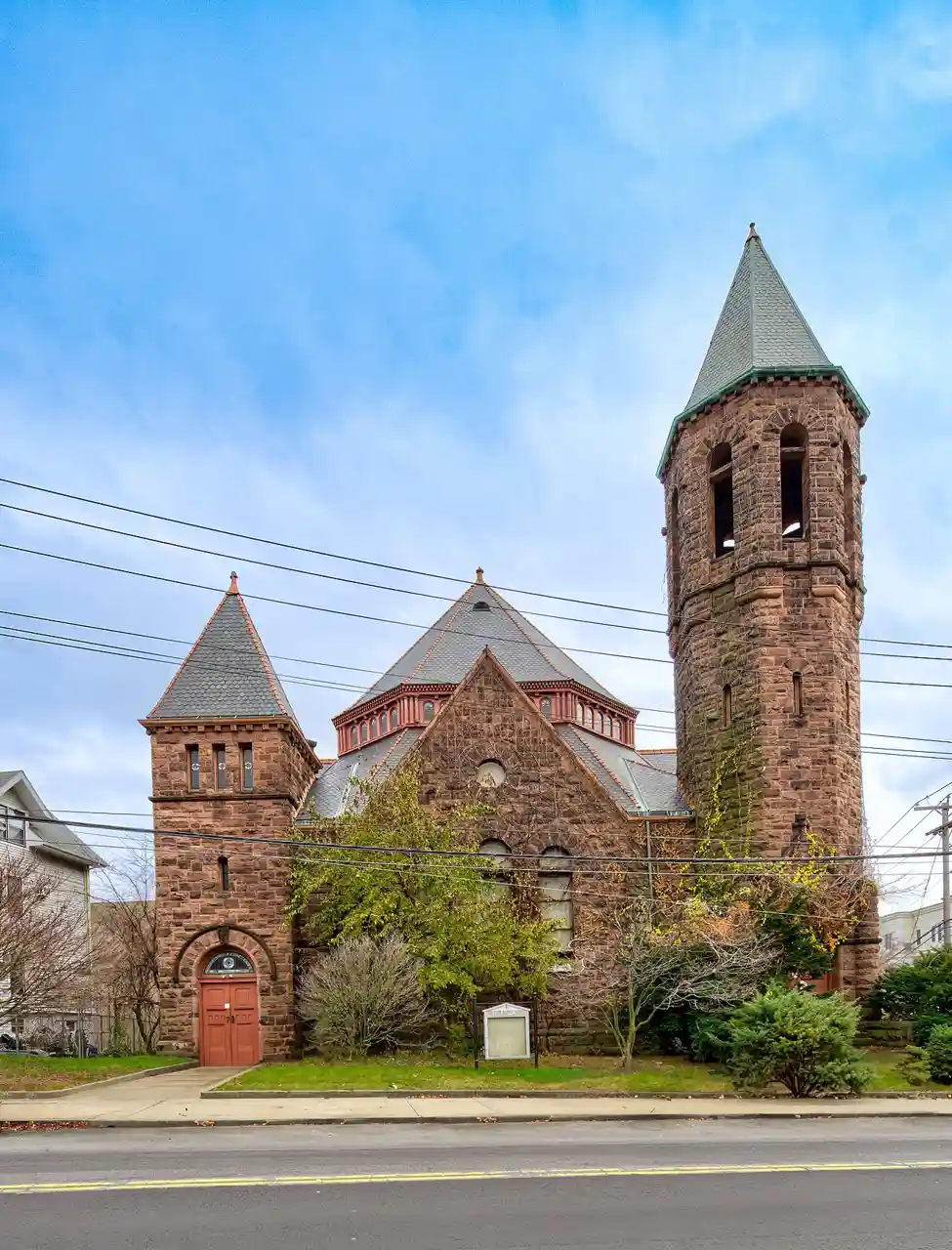 The First Baptist Church is a historic church at 126 Washington Avenue in Bridgeport, Connecticut. Built in 1893, it is a distinctive local example of Richardsonian Romanesque architecture, designed by local architect Joseph W. Northrop for a congregation founded in 1837. It was listed on the National Register of Historic Places in 1990. Read more on Wikipedia
