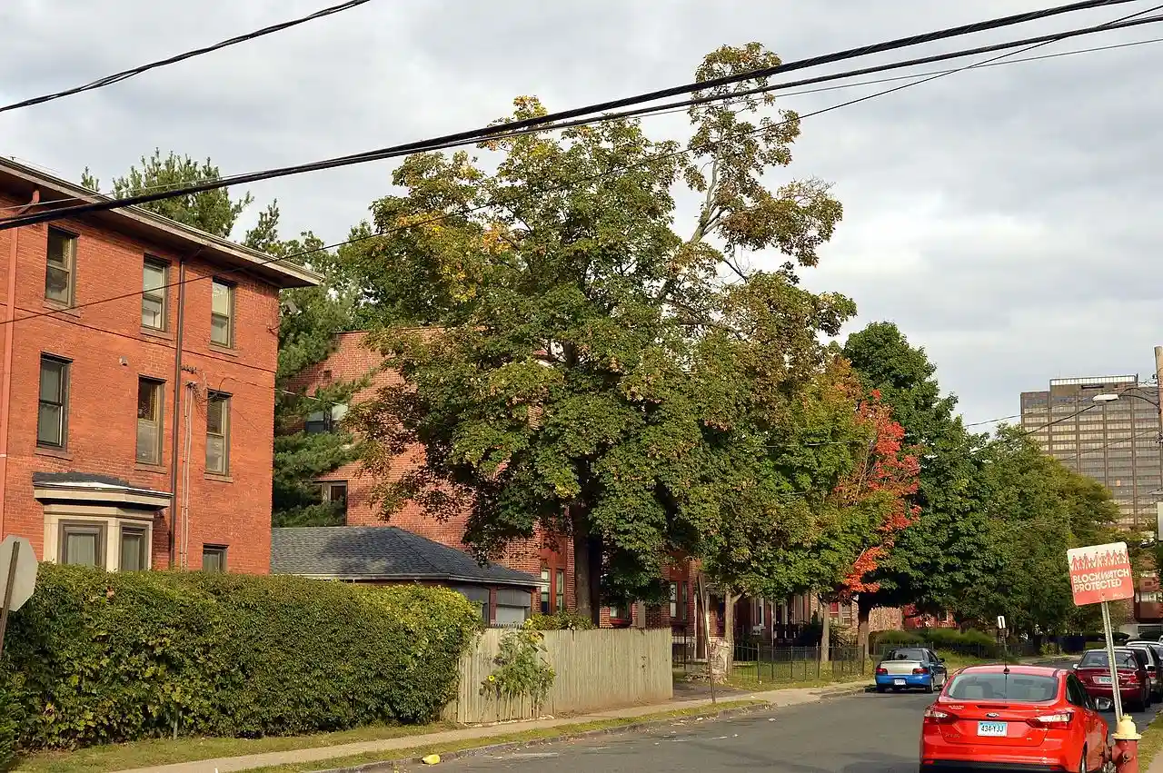 The Collins and Townley Streets District is a historic district encompassing a cluster of mid-to-late 19th-century residences in the Asylum Hill neighborhood of Hartford, Connecticut. It includes properties on Collins, Atwood, Willard, and Townley Streets, which range architecturally from the Italianate and Second Empire of the 1860s and 1870s to the Shingle style of the 1890s. The district was listed on the National Register of Historic Places in 1979. Read more on Wikipedia