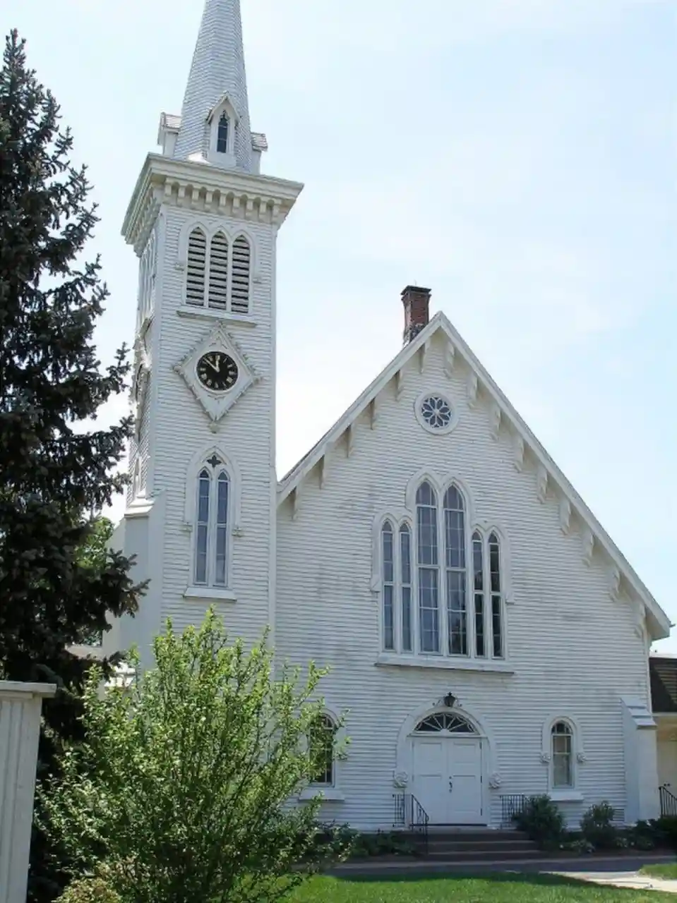 The Congregational Church of Plainville is a historic church building at 130 West Main Street in Plainville, Connecticut. Built in 1850, it is one Connecticut architect Henry Austin's significant church designs, exhibiting a mix of Carpenter Gothic and Romanesque features. It was built for a congregation formally organized in 1839 that is now affiliated with the United Church of Christ. The church was listed on the National Register of Historic Places in 2012. Read more on Wikipedia