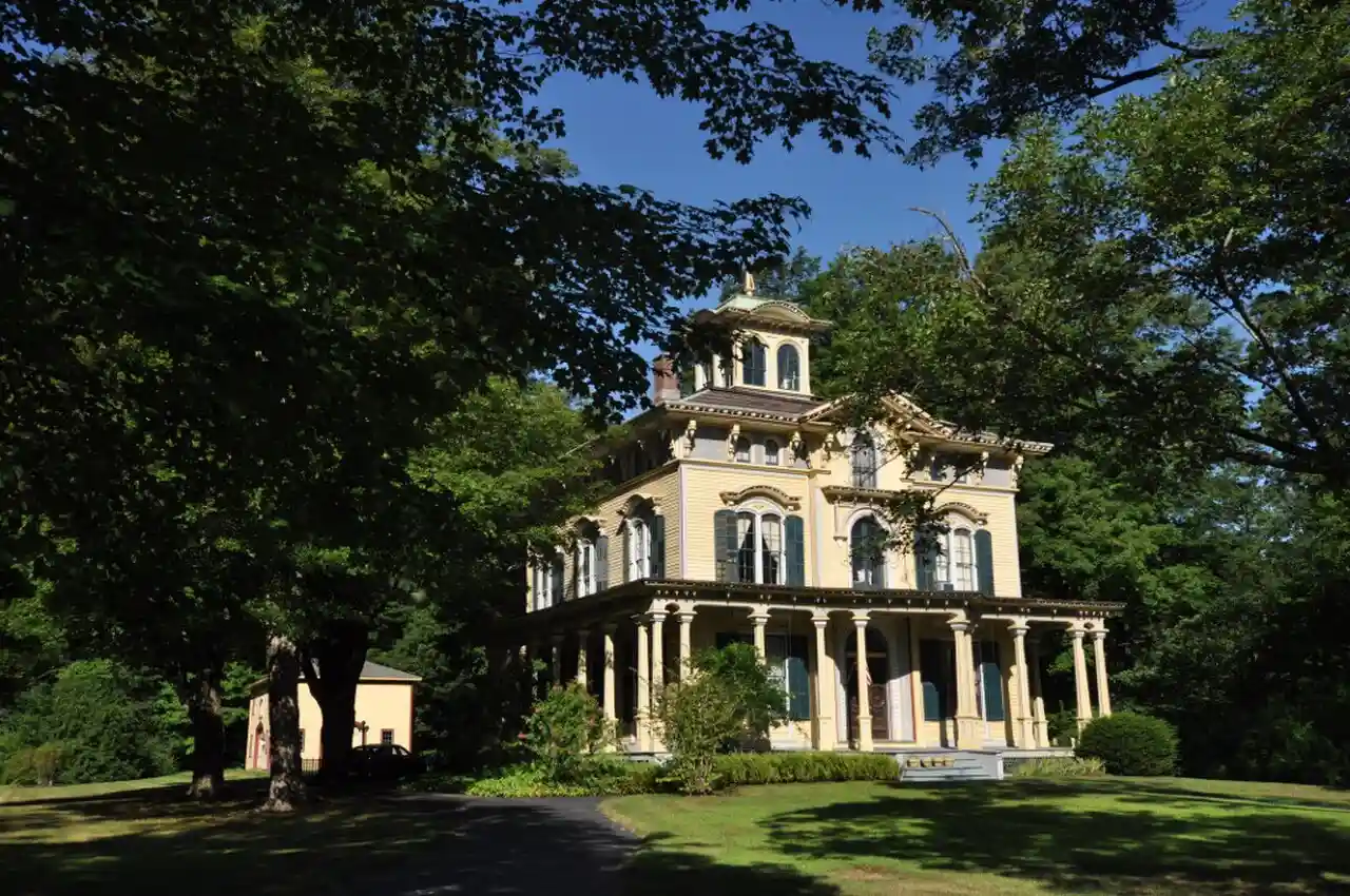 The Philip Chapin House is a historic house at 55 Church Street in the Pine Meadow village of New Hartford, Connecticut. Built in 1867 for a local factory owner, it is an elaborate example of Italianate architecture. It was listed on the National Register of Historic Places in 1977. Read more on Wikipedia