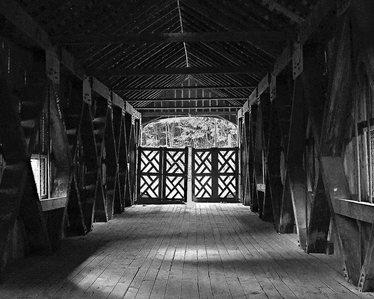 Comstock's Bridge, also known as the Comstock Covered Bridge, is a covered bridge in Connecticut, connecting the town of East Hampton to the town of Colchester, spanning the Salmon River. First built in 1840, but entirely replaced in 1873, it is one of only three historical covered bridges in the state. It is open to pedestrian traffic in a small park off Comstock Bridge Road. The bridge was listed on the National Register of Historic Places on January 1, 1976. Read more on Wikipedia