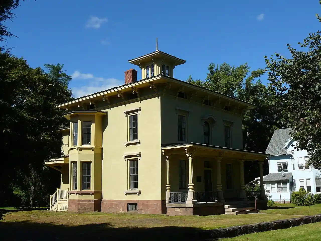 The Franklin Johnson House is a historic house at 153 South Main Street in Wallingford, Connecticut. Built in 1866, it is a distinctive local example of Italianate architecture. It was listed on the National Register of Historic Places in 1998. It is now home to the American Silver Museum, which is generally open by appointment or on special occasions. Read more on Wikipedia
