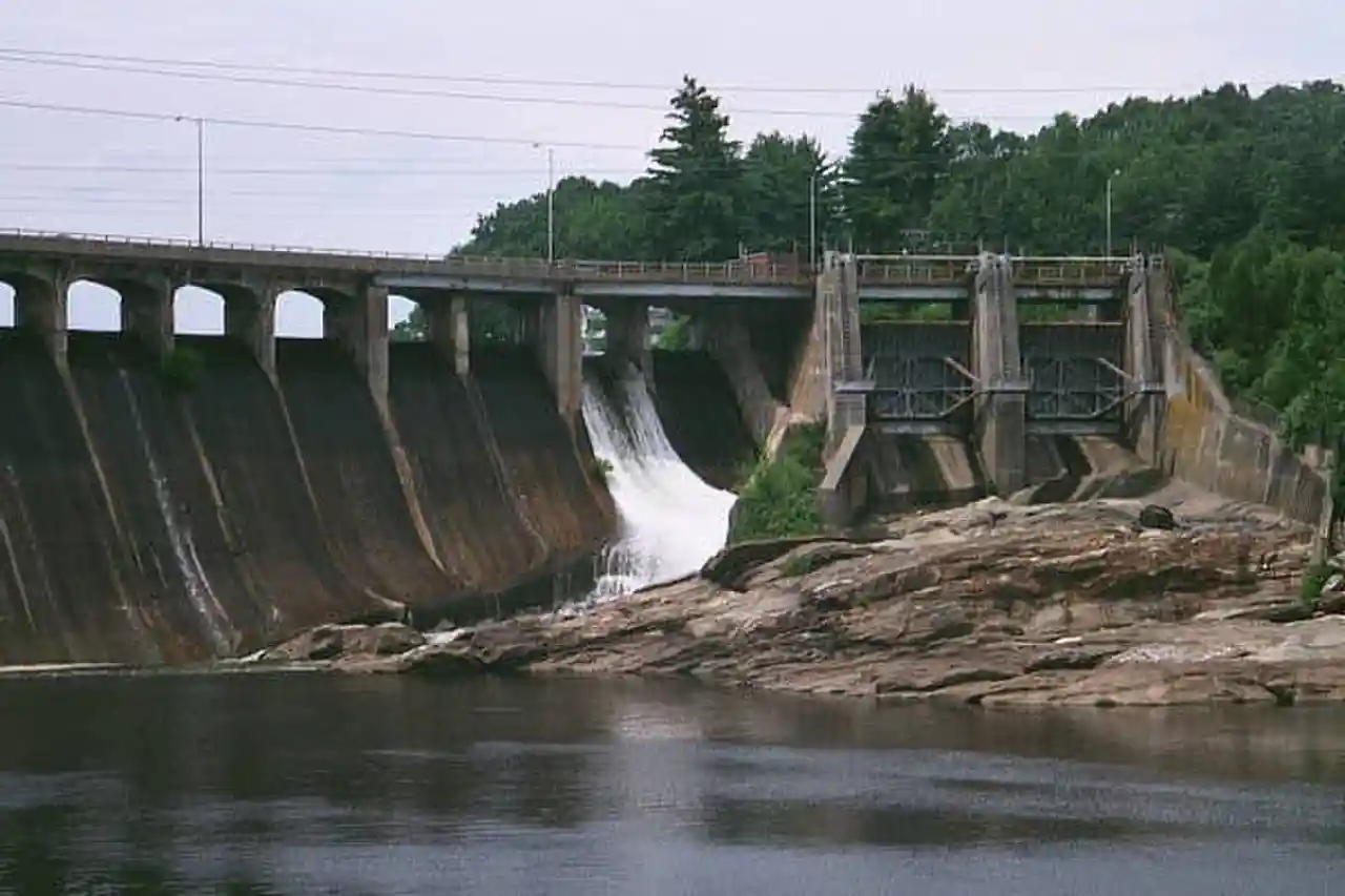 The Stevenson Dam Hydroelectric Plant is a hydroelectric power plant located on the Housatonic River at the boundary between the towns of Monroe and Oxford, Connecticut. The Connecticut Light and Power Company began construction in 1917 (completed 1919) and FirstLight Power has since gained ownership. It was listed on the National Register of Historic Places in 2000 and is considered to have high hazard potential by the National Inventory of Dams. The site includes three contributing structures: the Stevenson Dam, the Stevenson Dam Bridge, and the Stevenson Powerhouse. Read more on Wikipedia