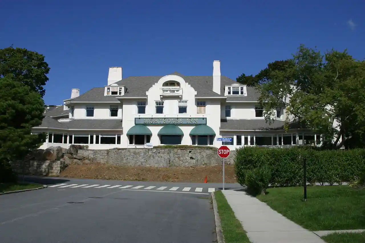 The Lighthouse Inn, originally known as Meadow Court, is a Colonial Revival hotel building at 6 Guthrie Place in New London, Connecticut. The Mission style main house was designed by William Ralph Emerson and built in 1902 as a country home for steel industry magnate Charles S. Guthrie. It is one of the few examples of this architectural style in the city, and became a popular dining and event venue after opening as an inn in 1927. The building and surviving estate remnants were listed on the National Register of Historic Places in 1996. It was listed for sale by the city in February 2014, with historic preservation restrictions. Read more on Wikipedia