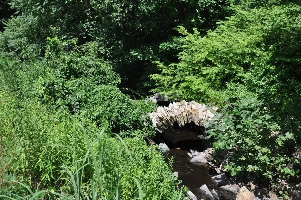 The Mill Brook Bridge is a historic stone arch bridge, located just north of Lower Blissville Road in Lisbon, Connecticut. With a plausibly estimated construction date of the 1790s, it is probably the oldest surviving stone arch bridge in the state. It was listed on the National Register of Historic Places in 1997. Since then, it has deteriorated and is partially collapsed. Read more on Wikipedia