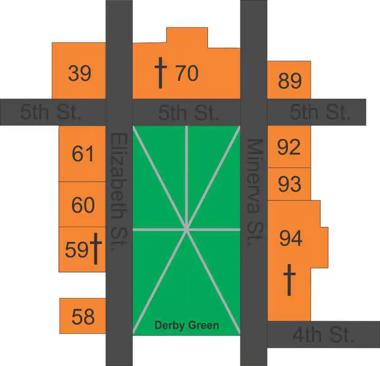 The Birmingham Green Historic District is located in central Derby, Connecticut just north of the central business district. Also known as the Derby Green Historic District, the district consists of the Green and the buildings surrounding it on the east, north, and west sides. A total of 10 buildings, 3 of which are churches, and 4 monuments encompass the district. It was listed on the National Register of Historic Places in 2000 as a good example of privately organized 19th century urban planning. Read more on Wikipedia