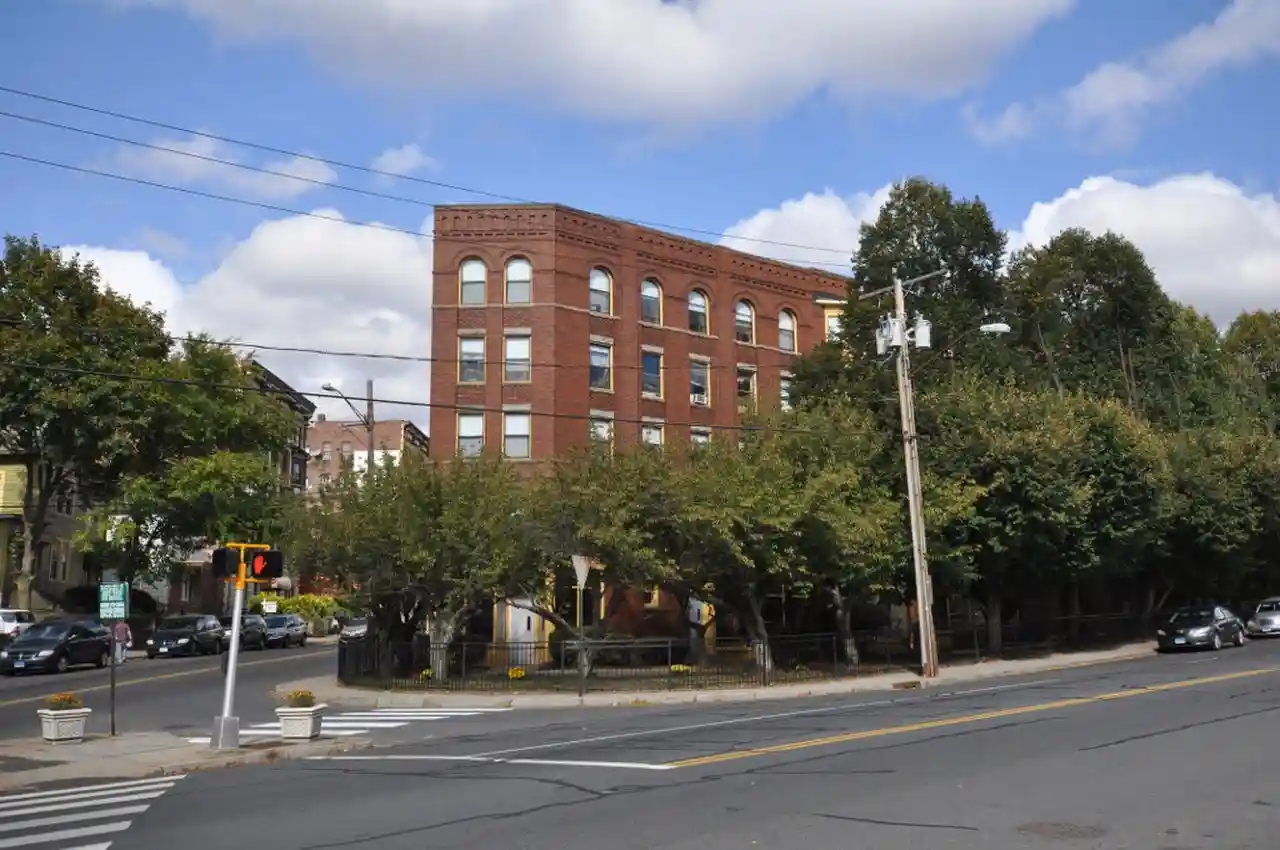 The George S. Abbott Building, also known as Wheeler and Wilson Building and Abbott Towers Apartments, is a historic mixed-use residential and commercial building at 245-247 North Main Street in Waterbury, Connecticut. Built in 1899, it is locally unusual for its all-masonry construction, and its unique adaptation to a triangular lot. The building was listed on the National Register of Historic Places in 1982. Read more on Wikipedia