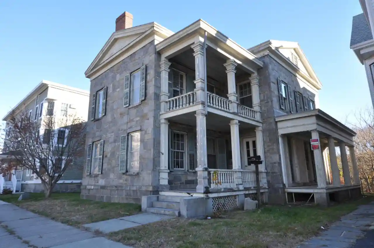 The John I. Howe House is a historic house at 213 Caroline Street in Derby, Connecticut. Built in 1845, it is a distinctive example of Greek Revival architecture executed in granite, built for John Ireland Howe of the Howe Pin Company. It was listed on the National Register of Historic Places in 1989. Read more on Wikipedia