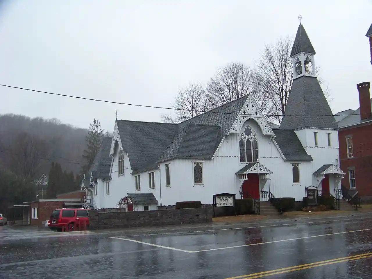 Trinity Church is a historic episcopal church at 160 Main Street in Thomaston, Connecticut. Built in two stages, 1871 and 1880, to a design by Richard M. Upjohn, it is a good example of Gothic and Stick Style architecture. The church was listed on the National Register of Historic Places in 1984. It is now part of a merged parish with St. Peter's of Plymouth. Read more on Wikipedia