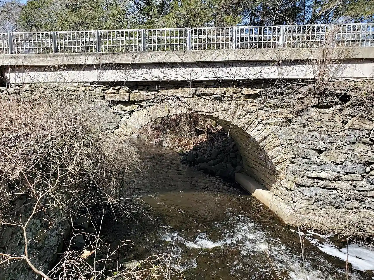 The Packerville Bridge is a historic stone arch bridge carrying Packerville Road over Mill Brook in Plainfield, Connecticut. Built in 1886, it is one of less than twenty surviving 19th-century stone arch bridges in the state, and is a well-preserved example of vernacular 19th century masonry bridge technology. The bridge was added to the National Register of Historic Places in 1992. Read more on Wikipedia