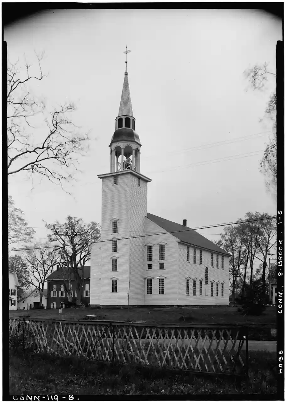 The Unitarian Meetinghouse is a historic church at the junction of Connecticut Routes 169 and 6 in the village center of Brooklyn, Connecticut. Built in 1771, it is one of a small number of pre-Revolutionary church buildings in the state, and distinctive for having a sufficiently complete documentary record to support a complete restoration. It retains a configuration distinctive of that period, with its main entrance on the long side of the building, and the pulpit opposite. The bell tower with steeple is located at one of the short ends, suggestive of the 19th century change to place the entrance there as well. The building was listed on the National Register of Historic Places in 1972. Read more on Wikipedia