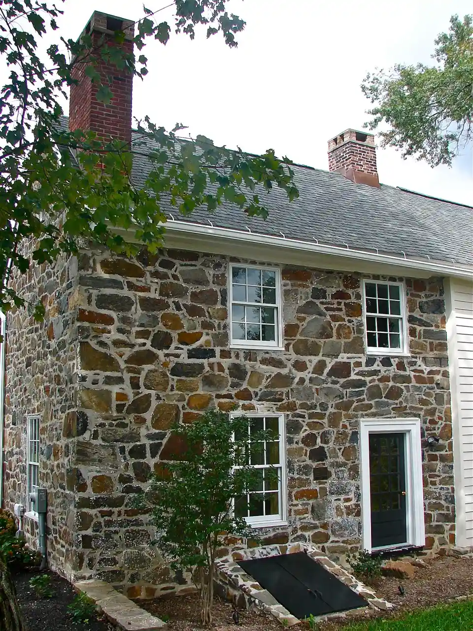 Charles Springer Tavern, also known as the Oak Hill Inn, Four Mile Inn, and Sign of the Three Tons, is a historic inn and tavern located near Wilmington, New Castle County, Delaware, USA. The building is a two-story, log and stone building that evolved in four major construction phases during the period from 1750 to 1850. The oldest section is a two-story, two-bay, gable-roofed log section. A stone, two-story, two-bay, gable-roofed section was added about 1780; the roof level, window and door openings and floor levels were subsequently raised on the original log section; and a stone, -story lean-to was added on the rear wall of the log section. It has been a residence since the early 20th century. It is in a vernacular Federal style. Also on the property are the contributing ruins of a stone barn built in 1852, the ruins of a stone springhouse, and a stone mileage marker identifying the location as being four miles from the City of Wilmington. and Read more on Wikipedia