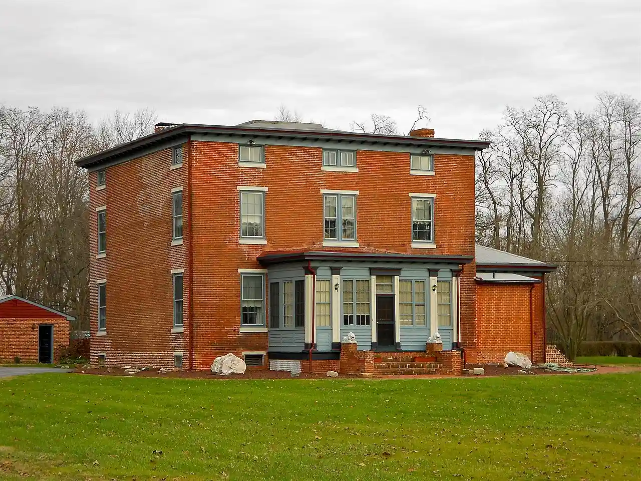 Chelsea is a historic home located in Delaware City, New Castle County, Delaware. It was built in 1848 by Thomas Clark, and is a three-story, three-bay-square brick block with a low, almost flat, hipped roof surmounted by a widow's walk. It is in a regional variation of the Italianate / Greek Revival style. It has a low, one-story wing at the east side, a wide, one-story glass-enclosed front porch and a large, two-story addition to the rear of the house. and Read more on Wikipedia