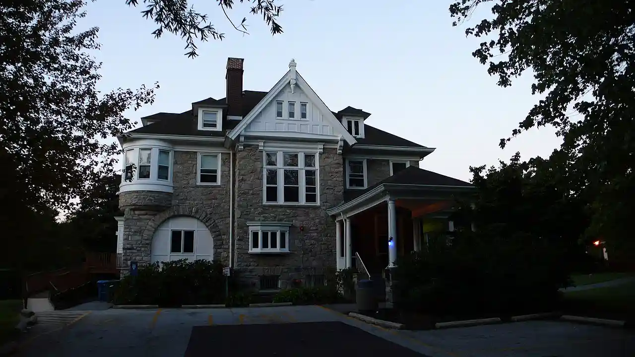 Curtis Mansion is a historic home located at Newark in New Castle County, Delaware. It was built in 1903 and is a story, rectangular stone residence in the Richardsonian Romanesque style. It has a five-bay facade, cross-gable roof, and northeast corner tower. The house features a wrap-around porch with Doric order column posts. It was built by Alfred A. Curtis, one of the three sons of F. D. Curtis, owner and operator of the Curtis Paper Mill. The house was purchased by the University of Delaware and initially served as a dormitory for French students. It was subsequently acquired in 1992 by the English Language Institute of the University of Delaware. Read more on Wikipedia
