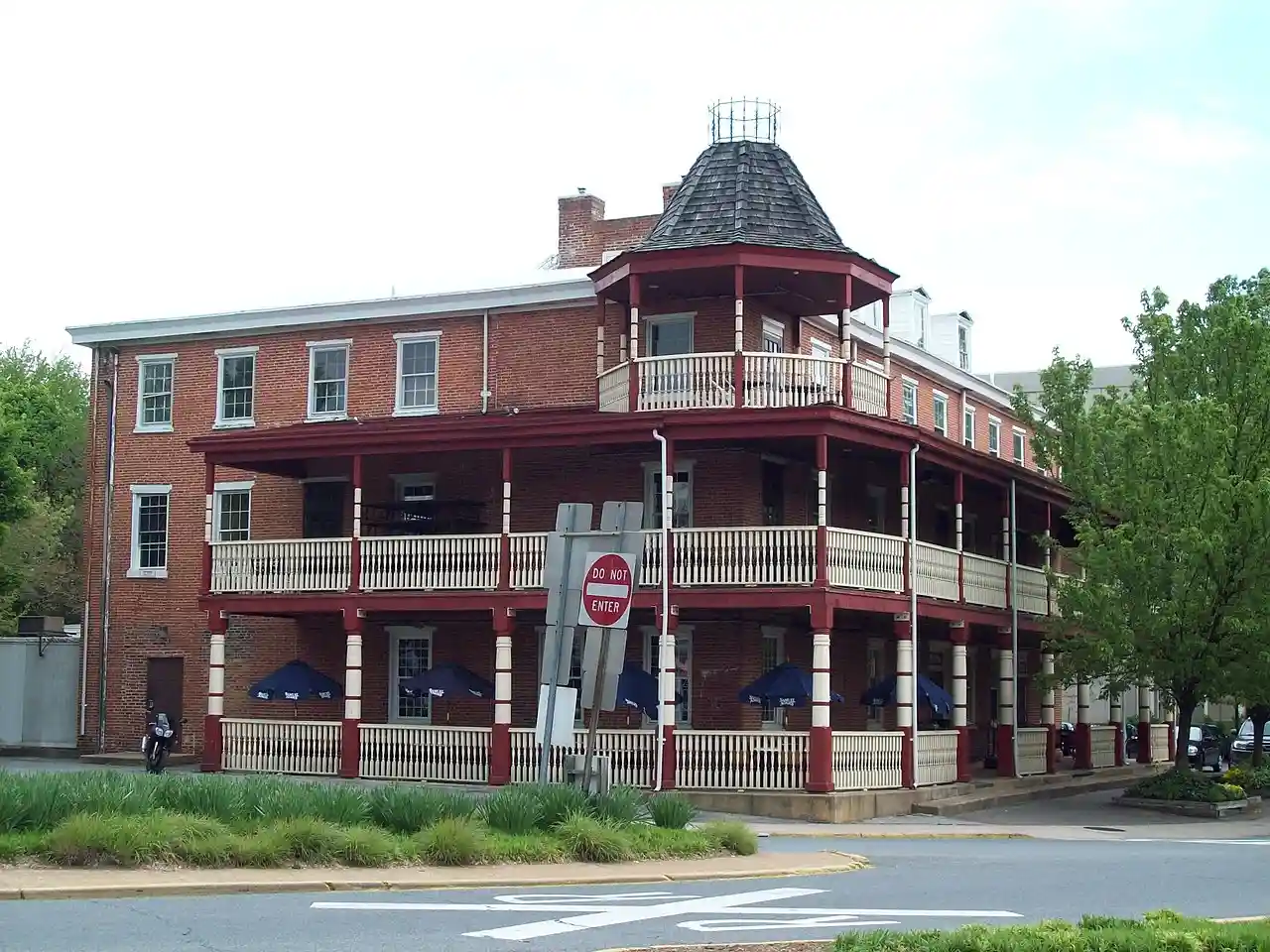 Deer Park Tavern is a historic hotel located at Newark in New Castle County, Delaware. It was built in 1851 on the land where the remains of the burned down St. Patrick's Inn had resided since 1747. It is a -story "U"-plan building with nine bays at the south front facade. The building is constructed of wood joists with brick and masonry load bearing walls with Greek Revival elements. It was converted from a hotel in the mid-20th century, and enjoys the college atmosphere of the nearby University of Delaware campus. Read more on Wikipedia