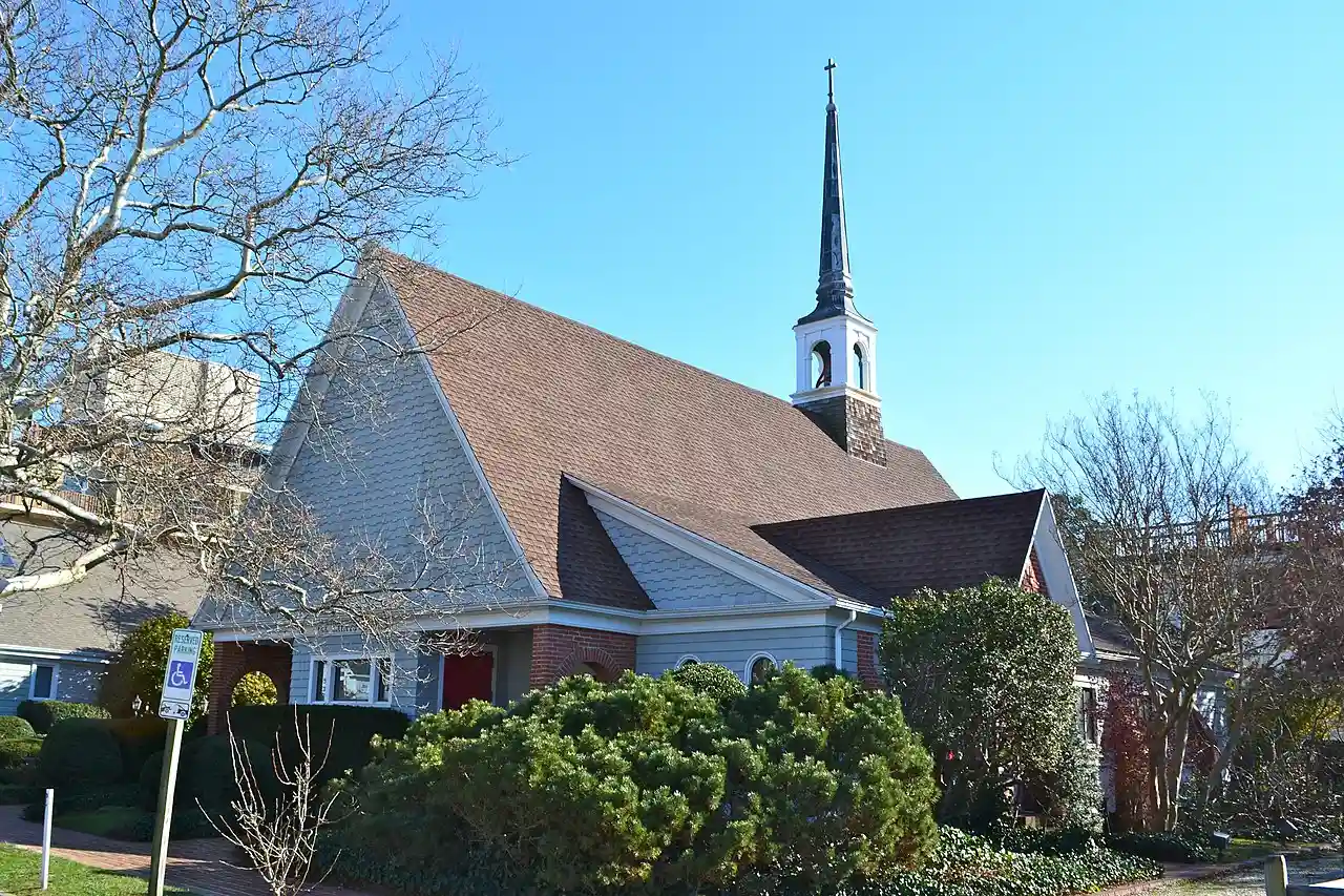 All Saints' Episcopal Church is a historic Episcopal church located at 18 Olive Avenue, Lewes and Rehoboth Hundred in Rehoboth Beach, Sussex County, Delaware. It was built in 1893 for the summer services of an Episcopal congregation. It is a one-story structure constructed of hand-molded brick, measuring 100 feet by 30 feet. It features board-and-batten wainscotting, fishscale shingled gable ends, ribbon windows, and a low-pitched gable roof in the Arts and Crafts style. The church was renovated after a fire in 1938. and It is joined with St. George's Chapel, Lewes in the Episcopal Parish of All Saints’ Church & St. George's Chapel. Read more on Wikipedia