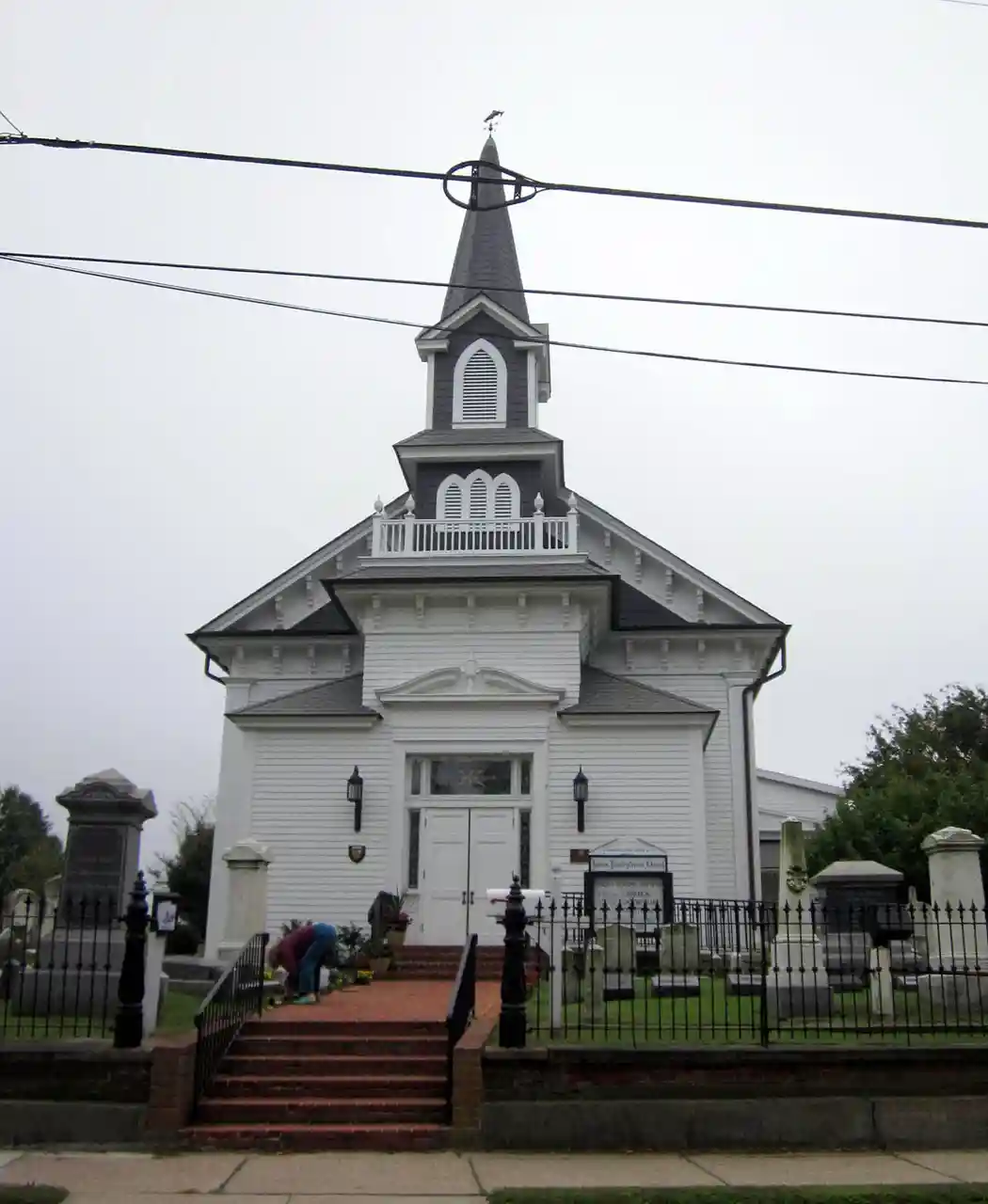 Lewes Presbyterian Church is a historic Presbyterian church building located at 100 Kings Highway in Lewes, Sussex County, Delaware. It was built in 1832, as a frame meeting house measuring 45 feet by 37 feet. In 1869, the church was renovated to add a number of a Gothic Revival style features and the addition of a chancel with Gothic windows. In 1886–1887, the tower and belfry were added and two massive Corinthian order columns were added to the interior. In 1931, the church acquired its Colonial Revival style front door. and Read more on Wikipedia