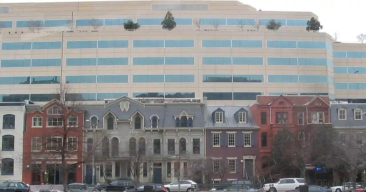2000 Pennsylvania Avenue (now Western Market), formerly known as The Shops at 2000 Penn and Red Lion Row, is a shopping center and eight-story office complex located on Pennsylvania Avenue, NW in Washington, D.C. It forms a busy gateway into the main campus of the George Washington University, which owns the property. As the 2000 Block of Eye Street, NW, the houses were named a DC Landmark and added to the National Register of Historic Places, both in 1977. Read more on Wikipedia