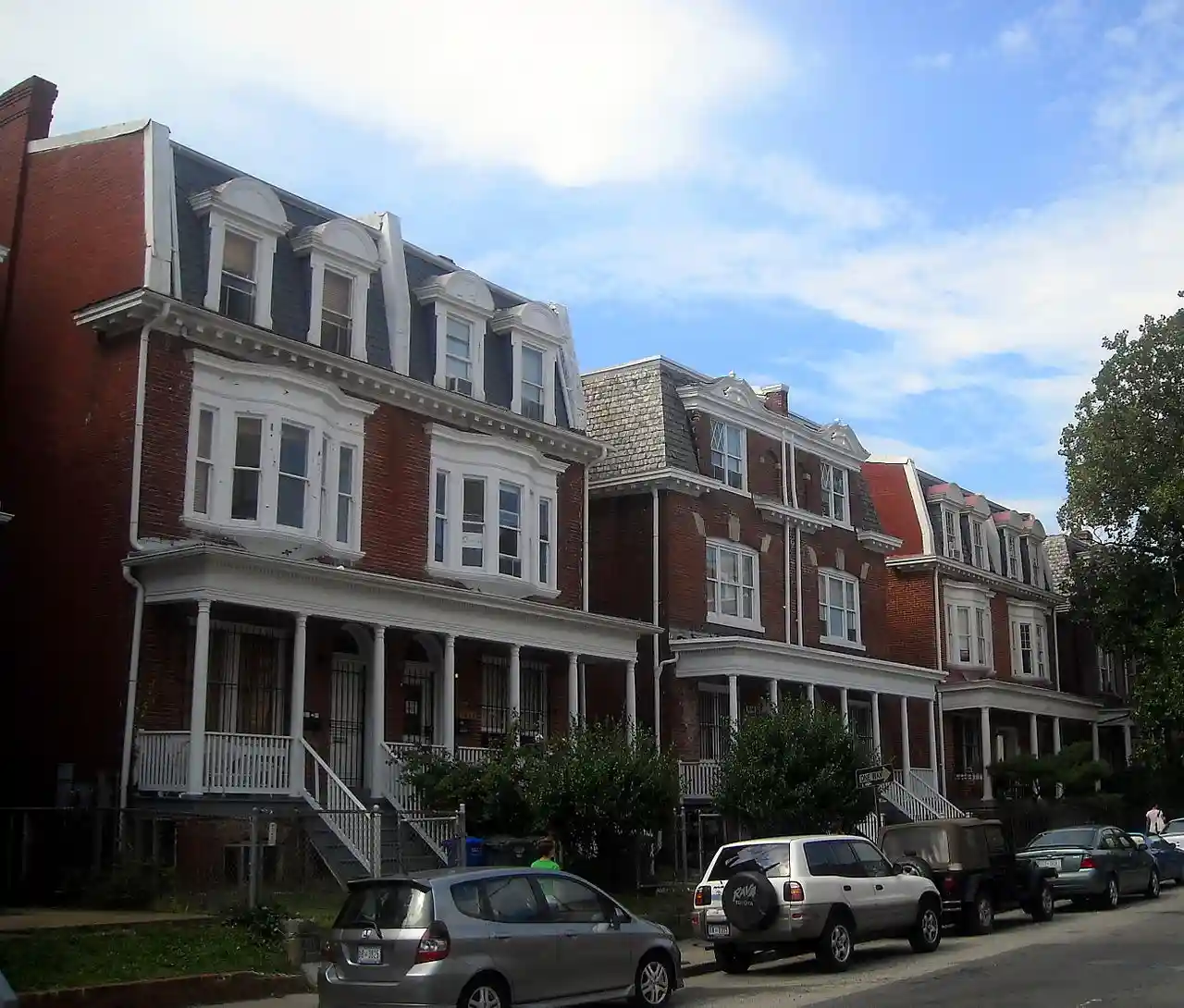 The Buildings at 1644–1666 Park Road NW are twelve semi-detached row houses in the Mount Pleasant neighborhood of Washington, D.C. They are typical of speculative row house development in the neighborhood. The houses were designed in the Colonial Revival style by Washington architect Appleton P. Clark Jr., and completed in 1906. They are a few of such houses that he designed and exemplify his facility for eclectic design and sophistication. The houses are three stories in height and the exteriors are covered in brick. They feature slate Mansard roofs and wooden front porches. The styles of the main facades alternate and contain shallow oriel windows, prominent dormers and curved pediments. They were listed in the National Register of Historic Places in 1986. Read more on Wikipedia