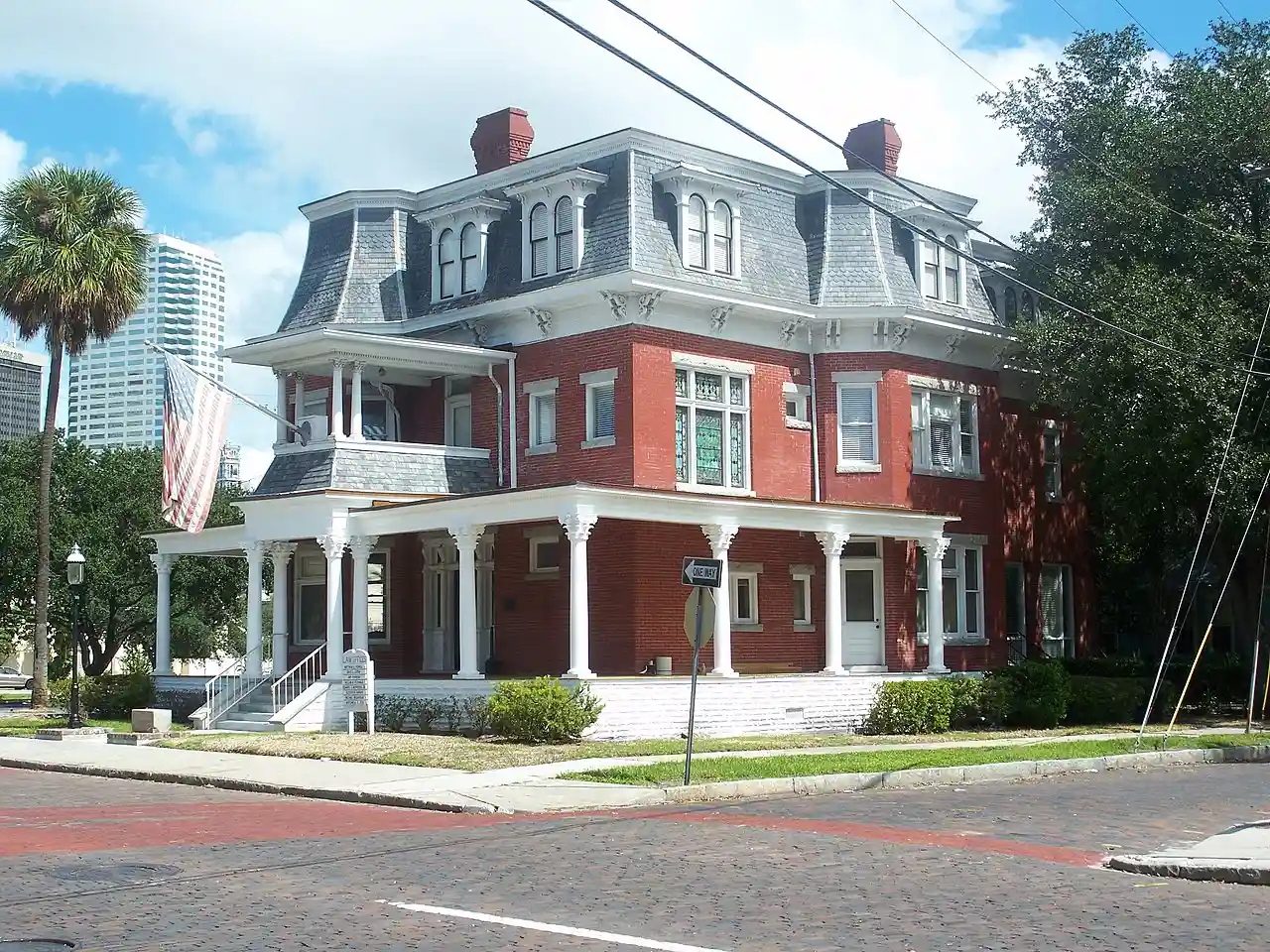 The Hutchinson House is a historic home completed in 1908 in Tampa, Florida, United States. It is a three-story brick building in the Second Empire architecture. The building includes a high mansard roof and large porch with tall Corinthian columns. Read more on Wikipedia