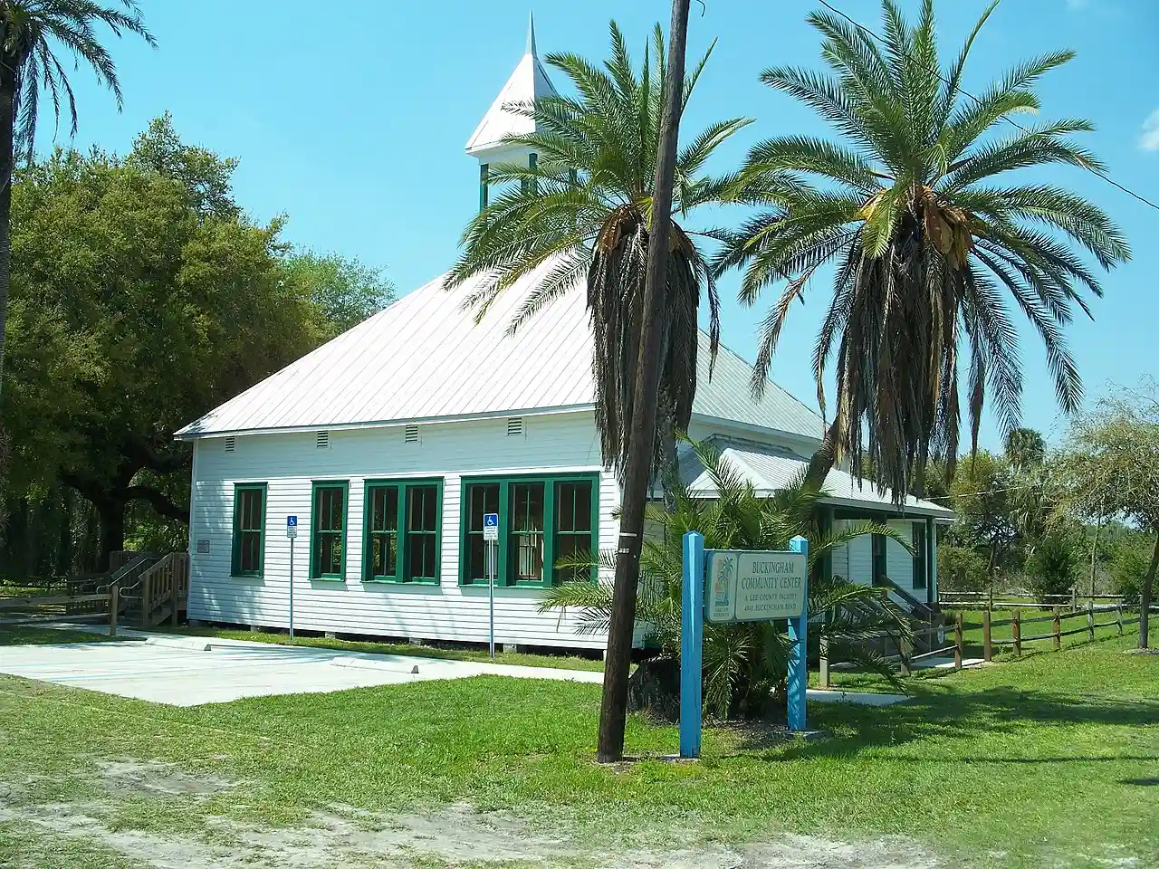 The Buckingham School (also known as the Twelve Mile Stream or Orange Creek or Orange River School) is a historic schoolhouse in Buckingham, Florida. It is located at Buckingham and Cemetery Roads. It was added to the U.S. National Register of Historic Places on 17 February 1989. Read more on Wikipedia