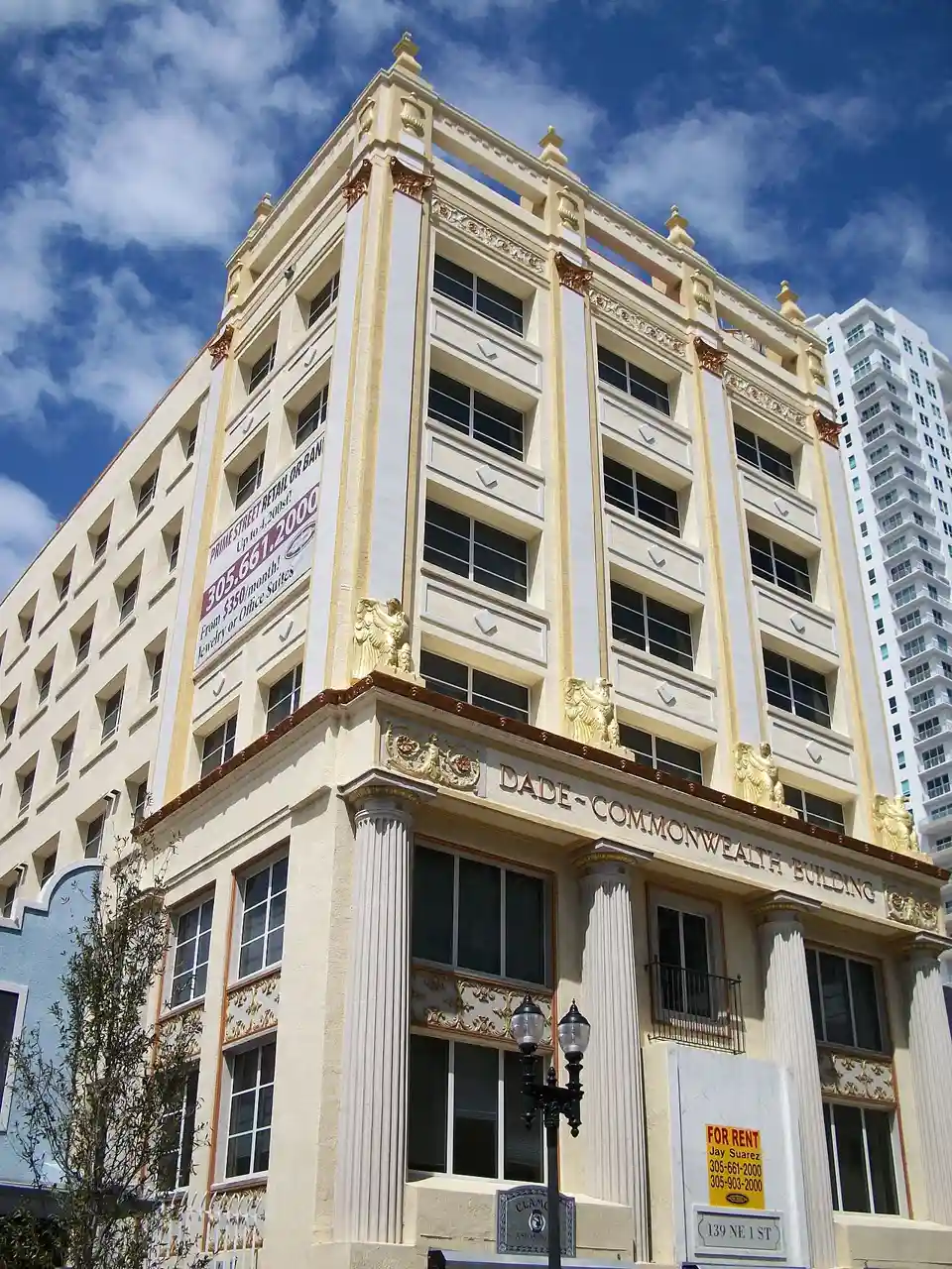 The Meyer–Kiser Building (also known as the Dade Commonwealth Building) is a historic U.S. building in Miami, Florida. It was built in 1925, the same year the Dade County Courthouse began construction. It is located at 139 NE 1st street. On January 4, 1999, it was added to the U.S. National Register of Historic Places. The building was once one of the tallest in Miami, and Dade County, completed the same year as the Freedom Tower, but was badly damaged during the 1926 Miami hurricane, and it was reduced from 17 to 7 stories. In 2015, new owners announced a plan to restore the building close to its original design. It didn't happen as of 2023. Read more on Wikipedia