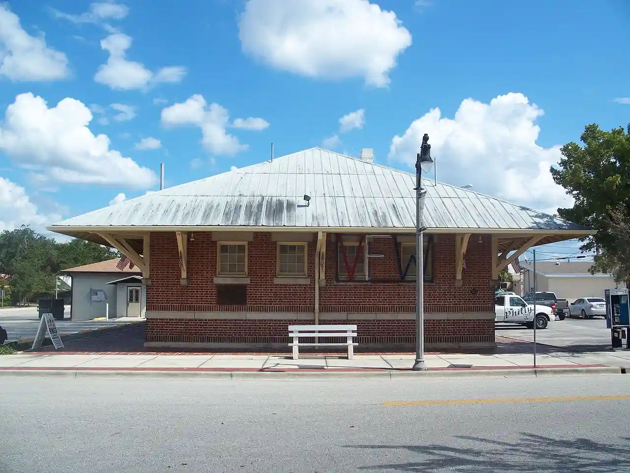 St. Cloud Depot is a former railway station in St. Cloud, Florida. After the original station building failed to placate demand, the city petitioned for a new station be built on the site. The old building was moved north of the tracks and continued use as the local freight depot; the new passenger station was opened in May 1918. Passenger service ceased and the line was abandoned by the 1930s. The Veterans of Foreign Wars had taken over the building by 1943. Read more on Wikipedia