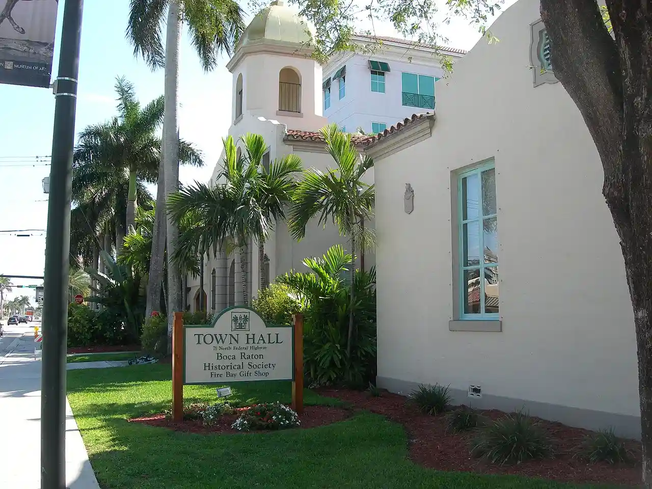 The Boca Raton Old City Hall (labeled as "Town Hall" on signs) is a historic site in Boca Raton, Florida, United States. It is located at 71 North Federal Highway. The former city hall now houses the Boca Raton Welcome Center and the Boca Raton History Museum. On October 16, 1980, it was added to the U.S. National Register of Historic Places. The original design was by Addison Mizner. On April 18, 2012, the AIA's Florida Chapter placed it on its list of Florida Architecture: 100 Years. 100 Places as Boca Raton Town Hall. Read more on Wikipedia