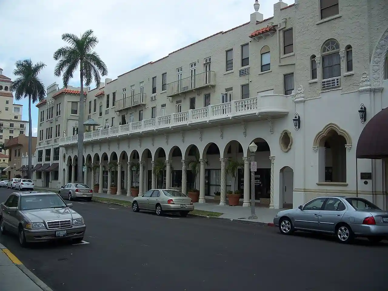 The Palm Beach Hotel is a former hotel located at 235-251 Sunrise Avenue in Palm Beach, Florida, in the United States. The building now serves as a condominium, the Palm Beach Hotel Condominium, and, on part of the fourth floor, a Modern Orthodox synagogue, the New Synagogue of Palm Beach. Read more on Wikipedia