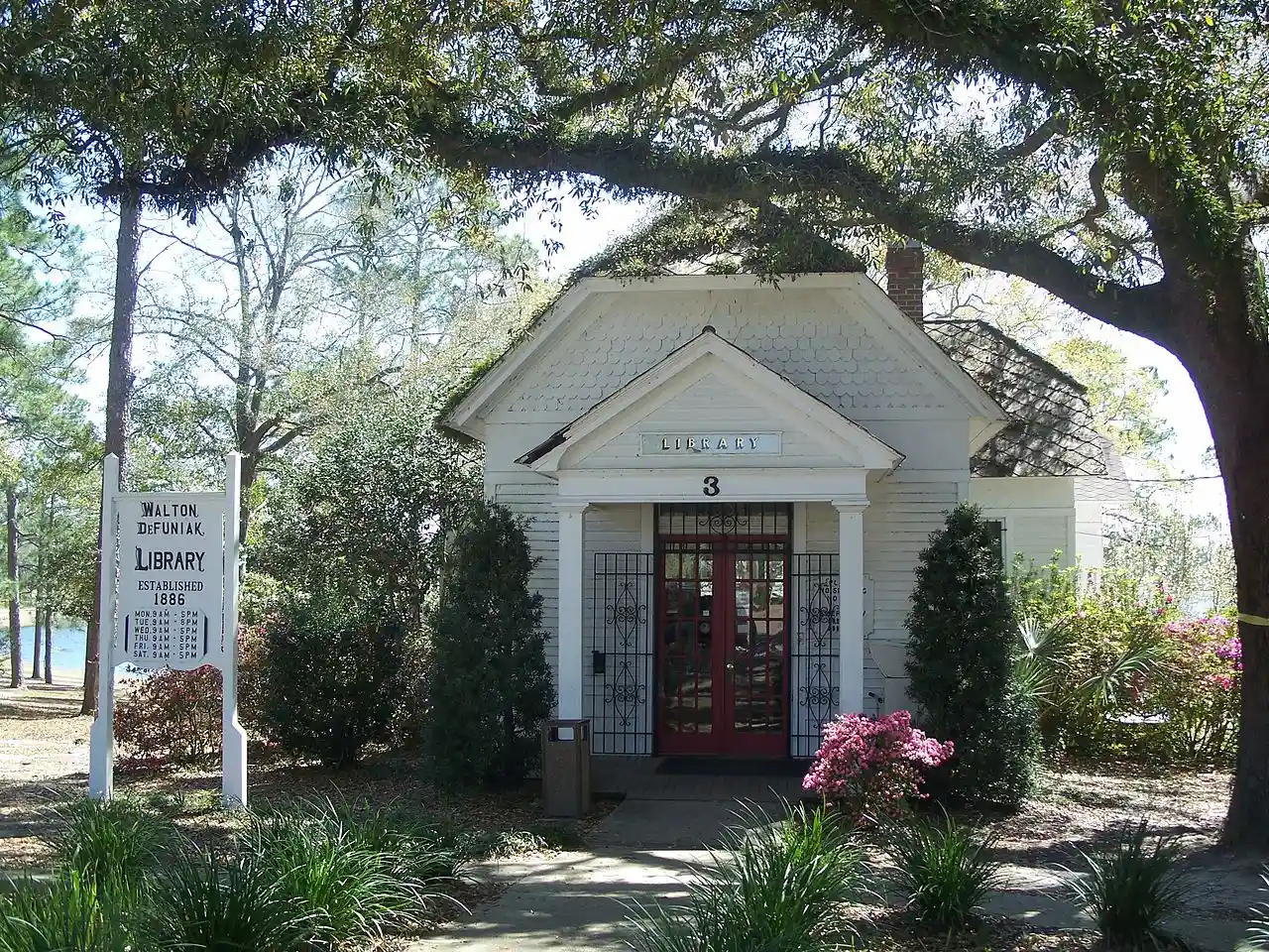 Walton-DeFuniak Library is a historic library located at 3 Circle Drive, in DeFuniak Springs, Walton County, Florida in the United States. Opened in 1887, it is the oldest continuously run library in the state. It is a contributing property in the DeFuniak Springs Historic District. The City of DeFuniak Springs and the commissioner’s office of the city donate funds to the Walton-DeFuniak library in order to keep the library running for patron benefit. While the original Walton-DeFuniak library was opened in 1886, there has been some debate as to exactly which library is the oldest in the state of Florida. Historians will say that the oldest library in Florida is actually located in St. Augustine. Read more on Wikipedia