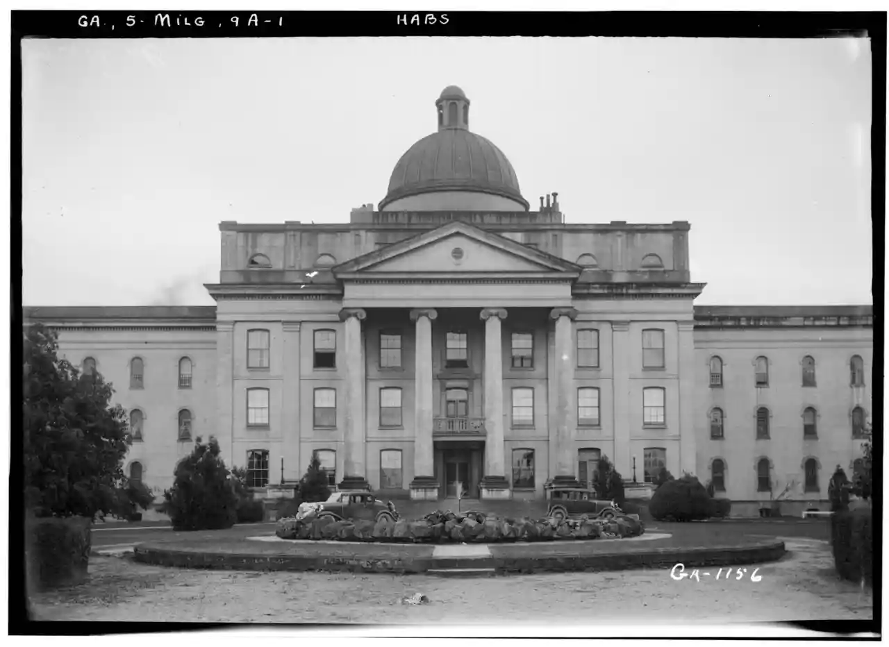 Georgia's state mental asylum located in Milledgeville, Georgia, now known as the Central State Hospital (CSH), has been the state's largest facility for treatment of mental illness and developmental disabilities. In continuous operation since accepting its first patient in December 1842, the hospital was founded as the Georgia State Lunatic, Idiot, and Epileptic Asylum, and was also known as the Georgia State Sanitarium and Milledgeville State Hospital during its long history. By the 1960s the facility had grown into the largest mental hospital in the world (contending with Pilgrim Psychiatric Center in New York). Its landmark Powell Building and the vast, abandoned 1929 Jones Building stand among some 200 buildings on two thousand acres that once housed nearly 12,000 patients. Read more on Wikipedia