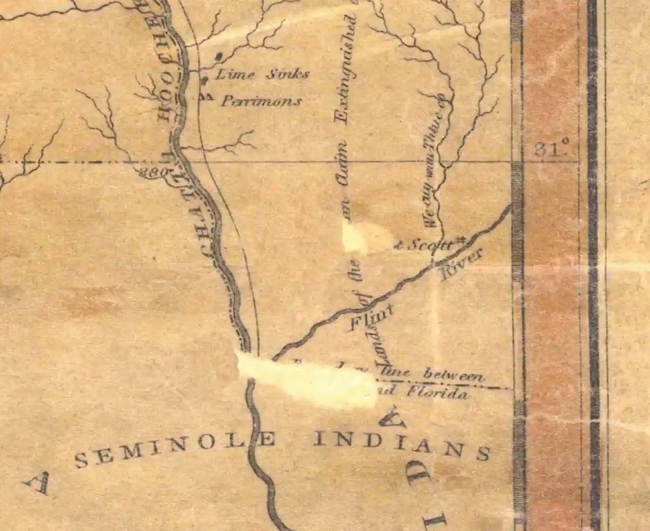 Fort Scott was built in 1816 on the west bank of the Flint River, where it joins the Chattahoochee River to form the Apalachicola, in the southwest corner of Georgia. It was named for Lieutenant Richard W. Scott, who was killed in the Scott Massacre of 1817 and never known to have visited the fort. (The fort replaced a much smaller fort or stockade, named Camp Crawford for Secretary of War William H. Crawford, and not to be confused with Fort Crawford (Alabama).) The need for a fort became evident during the War of 1812, when the British identified the undefended United States border and in 1814 built two forts on the Apalachicola River into which the Flint River flows: a strong fort at Prospect Bluff and a smaller one, Nicolls' Outpost, at the river juncture. This was in Spanish Florida, but Spain had neither the resources nor the inclination to do anything about the fort in a location that was remote. Read more on Wikipedia