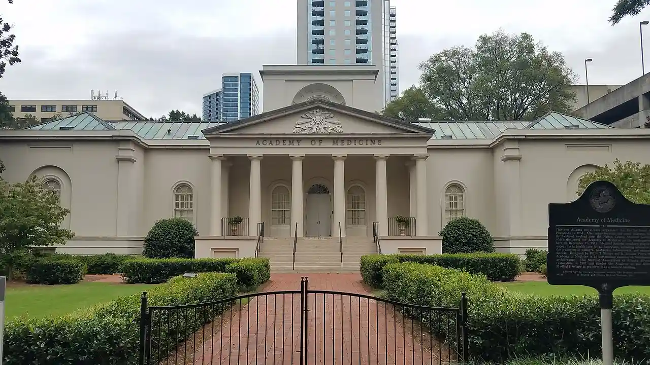 The Academy of Medicine in midtown Atlanta, Georgia, was built in 1941 and housed the Medical Association of Atlanta until the 1970s. The building is listed on the National Register of Historic Places, and is also designated as a historic building by the City of Atlanta. It is currently owned by the Georgia Institute of Technology. Read more on Wikipedia