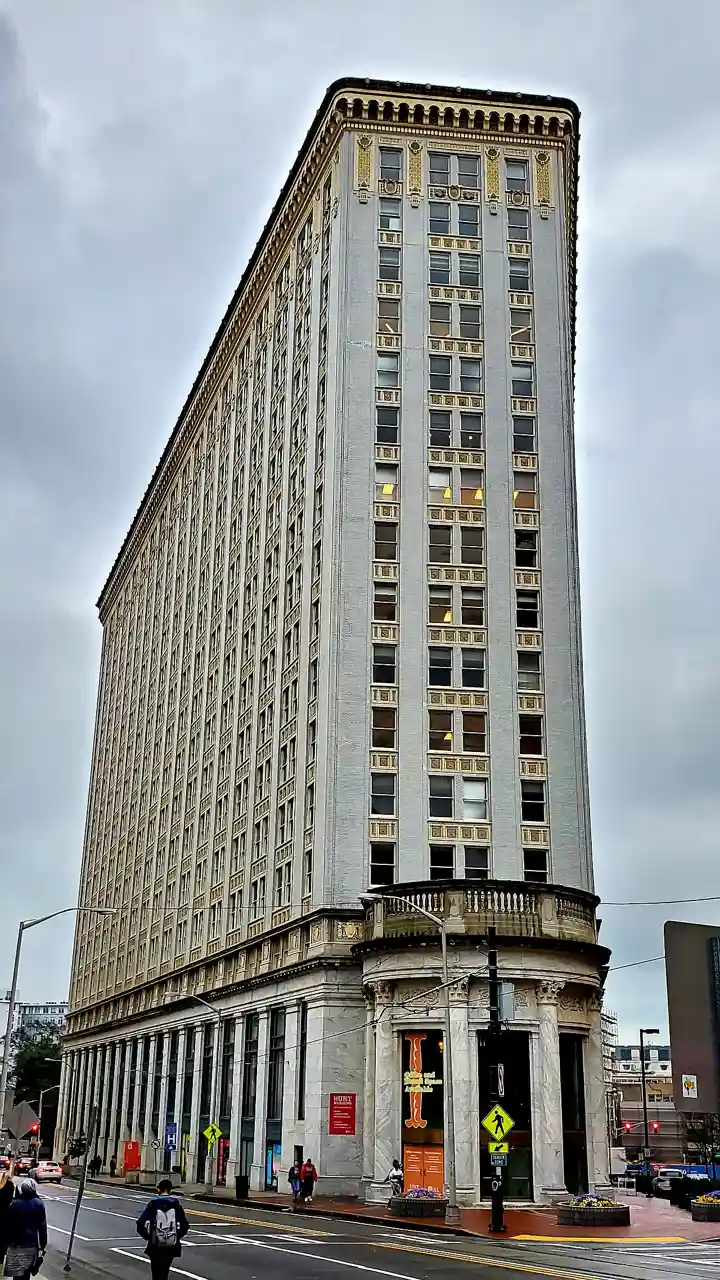 The Hurt Building is an 18-story building located at 50 Hurt Plaza in Atlanta, Georgia with a unique triangular shape. One of the nation's earliest skyscrapers, the Hurt Building was built between 1913 and 1926, and was the initial home for the Federal Reserve Bank of Atlanta. It was renovated in 1985. It was added to the National Register of Historic Places in 1977. Read more on Wikipedia