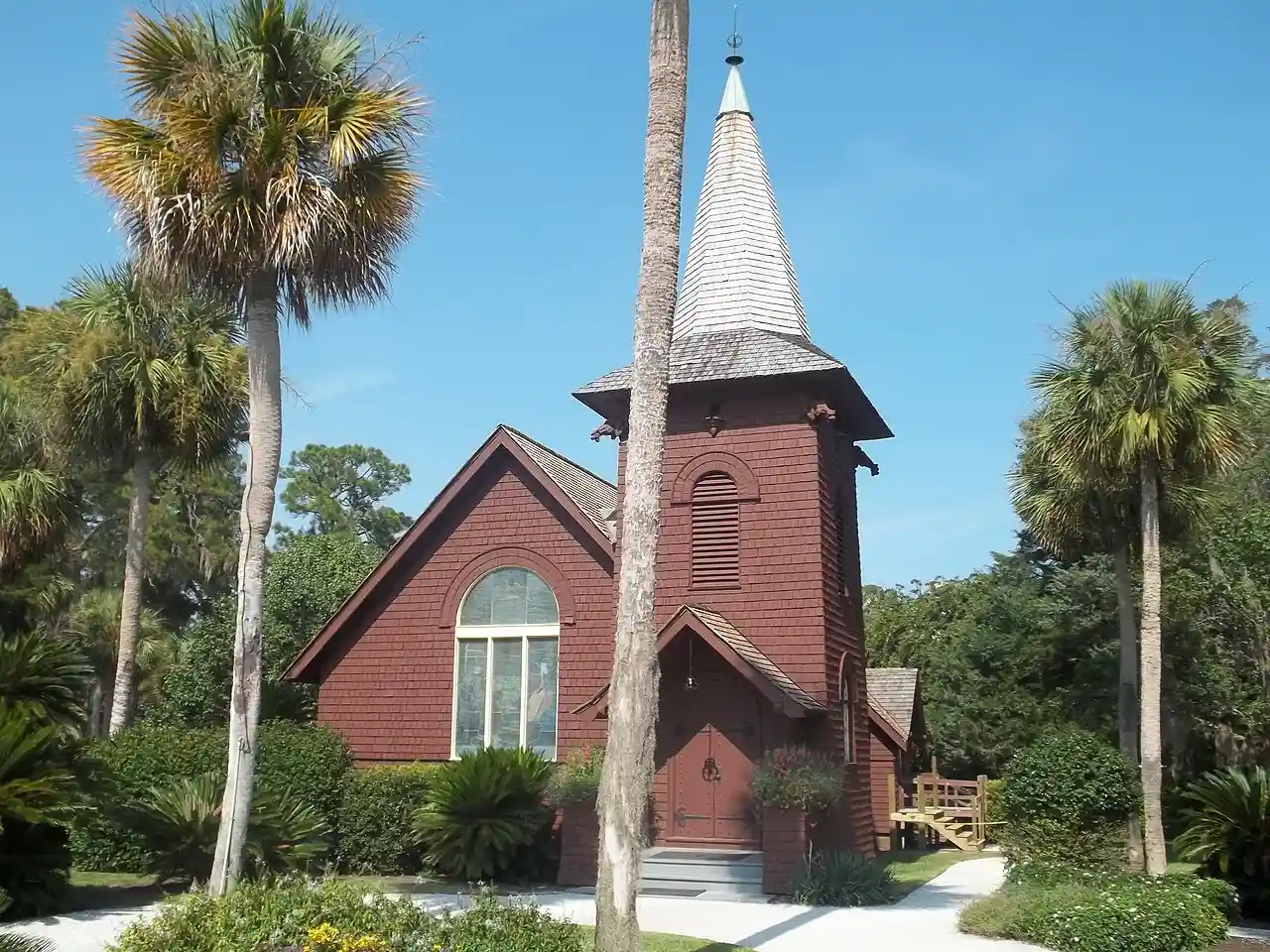 Faith Chapel is a historic chapel on Old Plantation Road in Jekyll Island, Georgia and was built in 1904. It was used as a non-denominational chapel until 1942. The state of Georgia purchased it along with Jekyll Island in 1947. It is administered by the Jekyll Island State Park Authority and was opened to the public in 1970. It has a wood "A" frame and a brick foundation. The interior and exterior walls are shingled, with gargoyles that are replicas of the ones at Notre Dame Cathedral. The chapel was added to the National Register of Historic Places in 1971 and it is open to the public.NRHP form Read more on Wikipedia