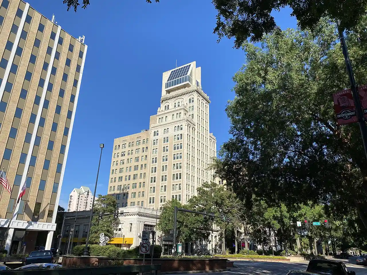 The Lamar Building is a 17-story skyscraper in Augusta, Georgia. It was scheduled to be completed in 1916, but the Augusta Fire of 1916 forced crews to demolish the building and restart. It was finally completed in 1918. A penthouse level was added in 1976, designed by I. M. Pei. In July 2011, the architectural critic James Howard Kunstler labeled it his "Eyesore of the Month", saying the addition is reminiscent of a Darth Vader helmet.James Howard Kunstler, Eyesore of the Month , July 2011 Read more on Wikipedia