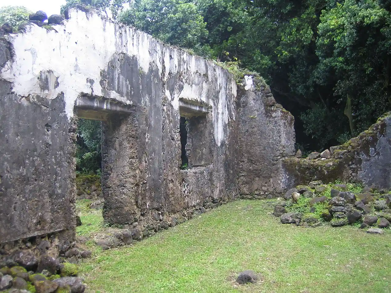 Kaniakapūpū ("the singing of the land shells"), known formerly as Luakaha ("place of relaxation"), is the ruins of the former summer palace of King Kamehameha III and Queen Kalama on the island of Oahu in Hawaii. Built in the 1840s, and situated in the cool uplands of the Nuʻuanu Valley, it served as the king and queen's summer retreat after the capital of the Kingdom of Hawaii moved from Lahaina to Honolulu in 1845. It was famous for being the site of a grand luau attended by an estimated ten thousand guests during the 1847 Hawaiian Sovereignty Restoration Day celebration. The palace had fallen into ruins by 1874; no records exist about its condition in the intervening years. Rediscovered in the 1950s, the site was cleared and efforts were made to stabilize the ruins from further damage by the elements and invasive plant growth. The site remains officially off-limits to the public and trespassers are subjected to citations, although the site is not regularly monitored. Read more on Wikipedia