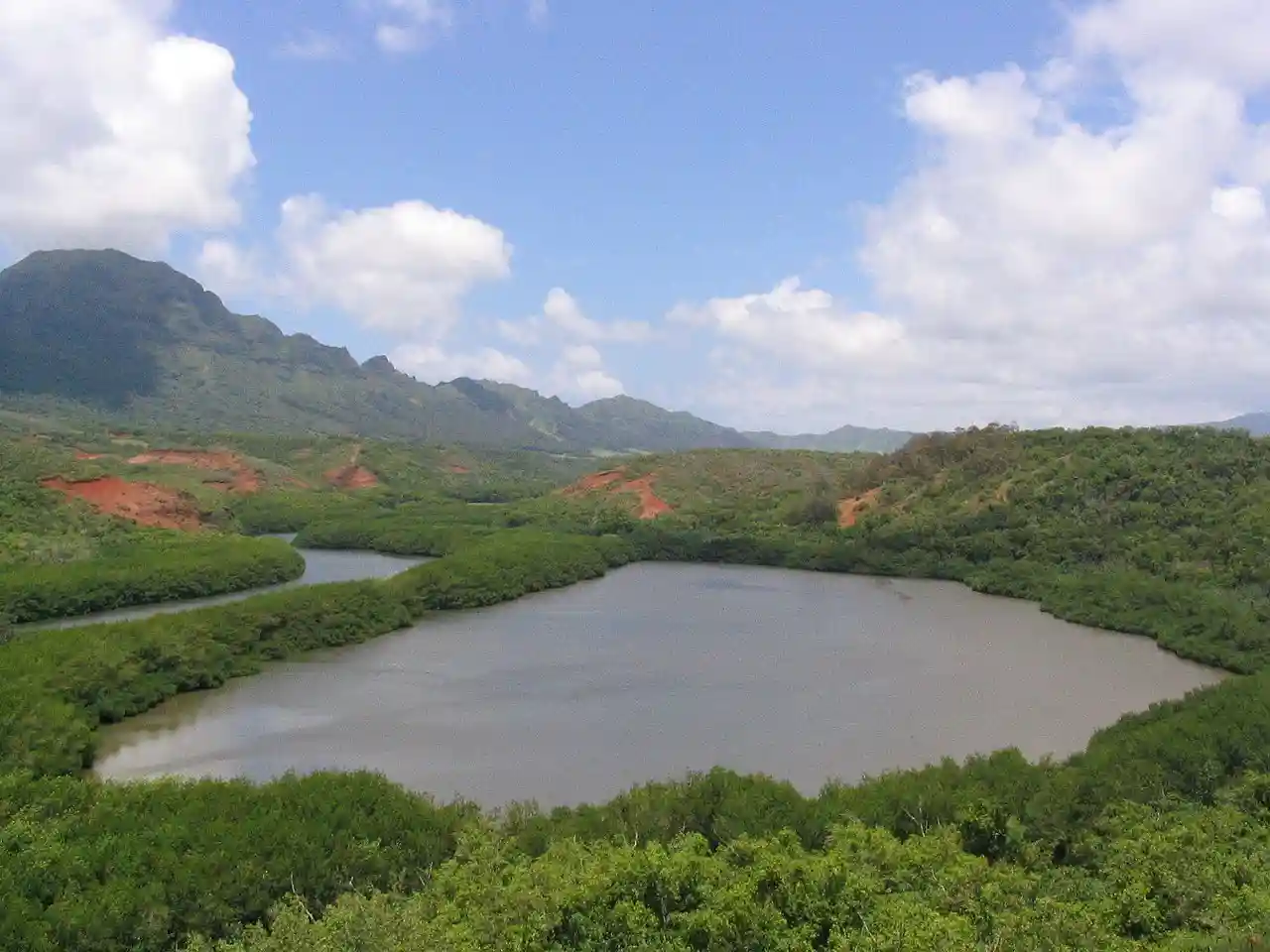 The Alekoko Fishpond, known locally as the Menehune Fishpond, near Līhuʻe, Hawaii, on the island of Kauai, is a historic Hawaiian fishpond. Also known as Alakoko Fishpond, it has been listed on the U.S. National Register of Historic Places since 1973. Read more on Wikipedia