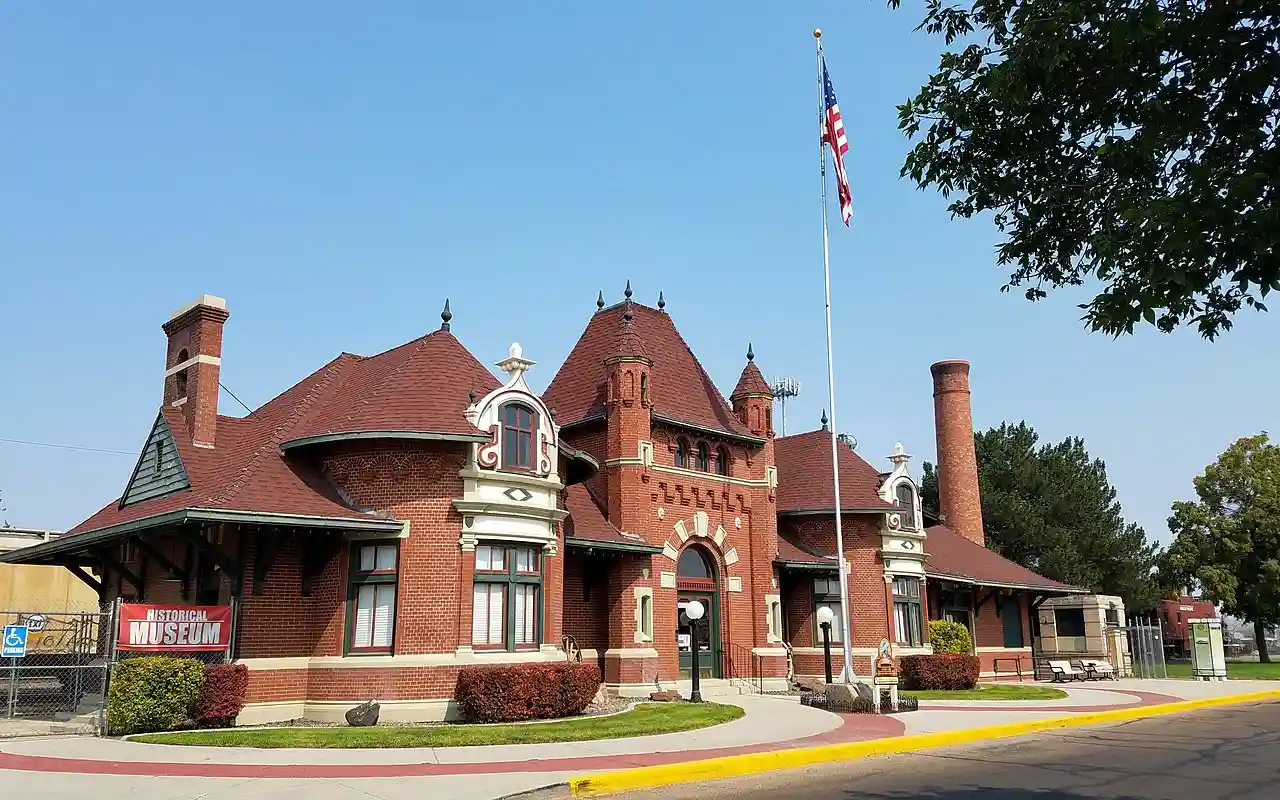 The Nampa Depot in Nampa, Idaho, is a former passenger station on the Oregon Short Line Railroad, designed by Frederick W. Clarke. The 1-story, brick and sandstone depot was described in 1972 by Arthur A. Hart, director of the Idaho State Historical Museum, as "an interesting eclectic combination of Romanesque, Renaissance, and Baroque elements, with the latter dominating. A massive central block of French Renaissance form is flanked by two advancing Baroque bays that bulge dramatically forward." The depot was added to the National Register of Historic Places in 1972. With Read more on Wikipedia