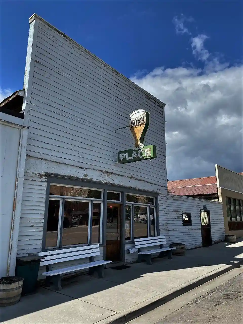 Bux's Place in Challis, Idaho was listed on the National Register of Historic Places in 1980. It is a two-story log building which is significant as the only one known to be log and surviving of commercial buildings on Main Avenue in Challis in the 1880s. With . In 1980, the building had a neon sign reading "Bux's Place". Its front lower fenestration dated from the 1930s. Read more on Wikipedia